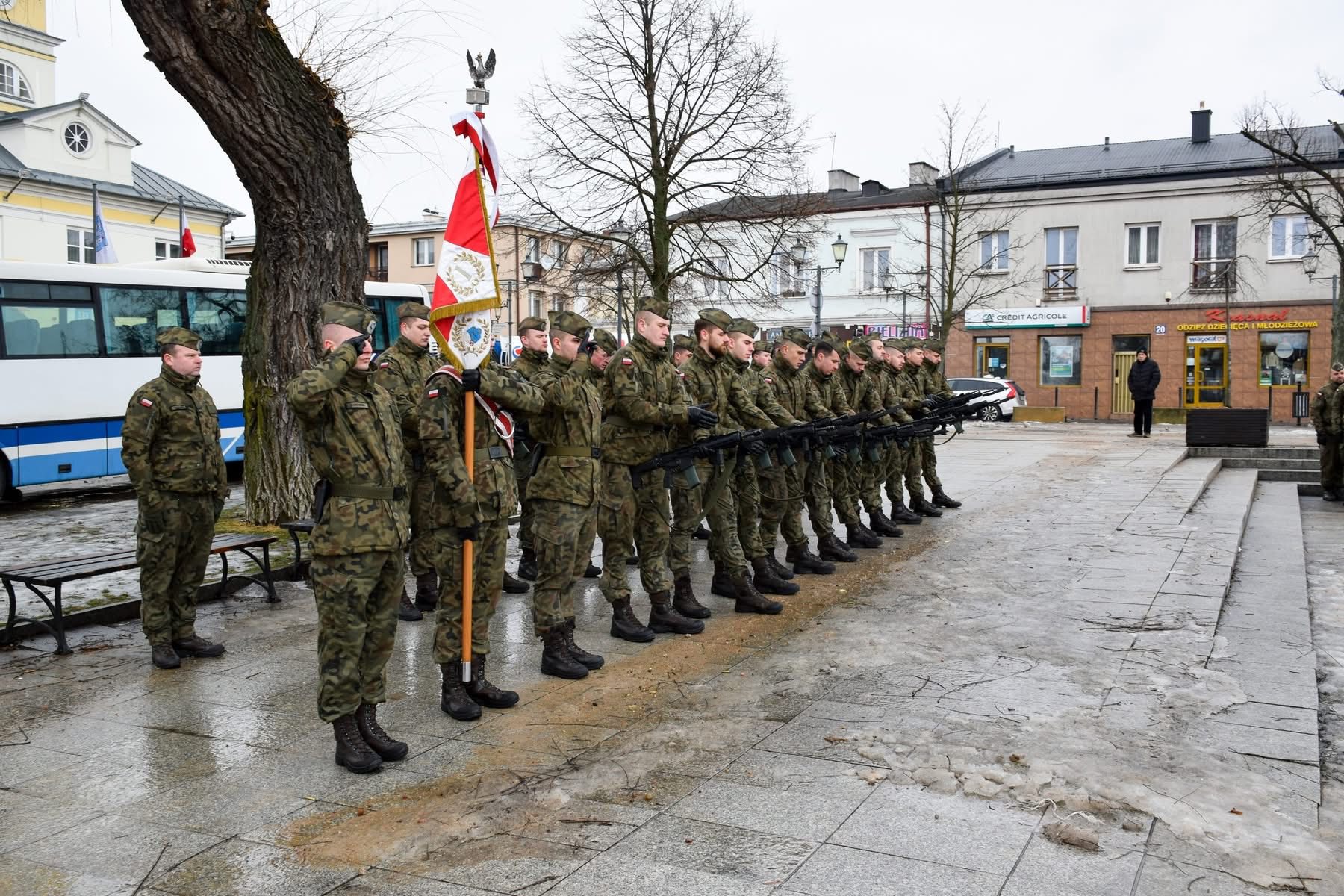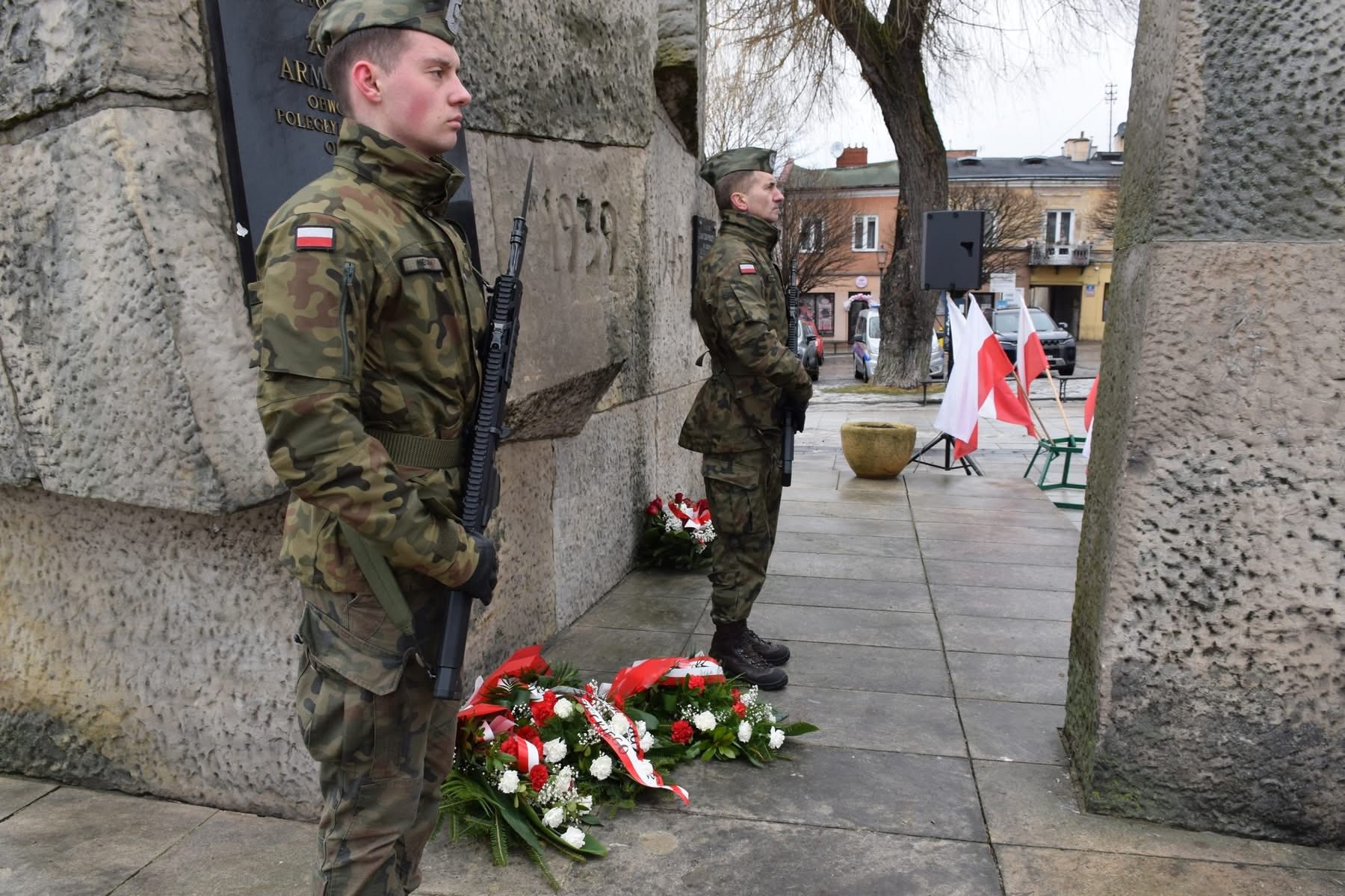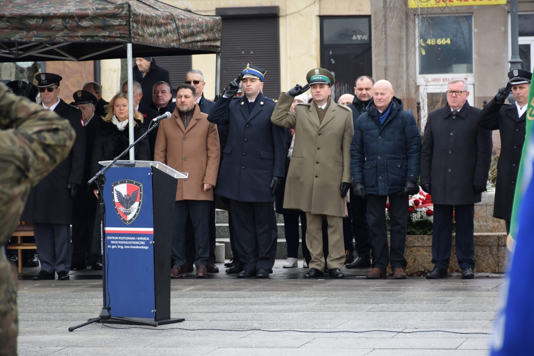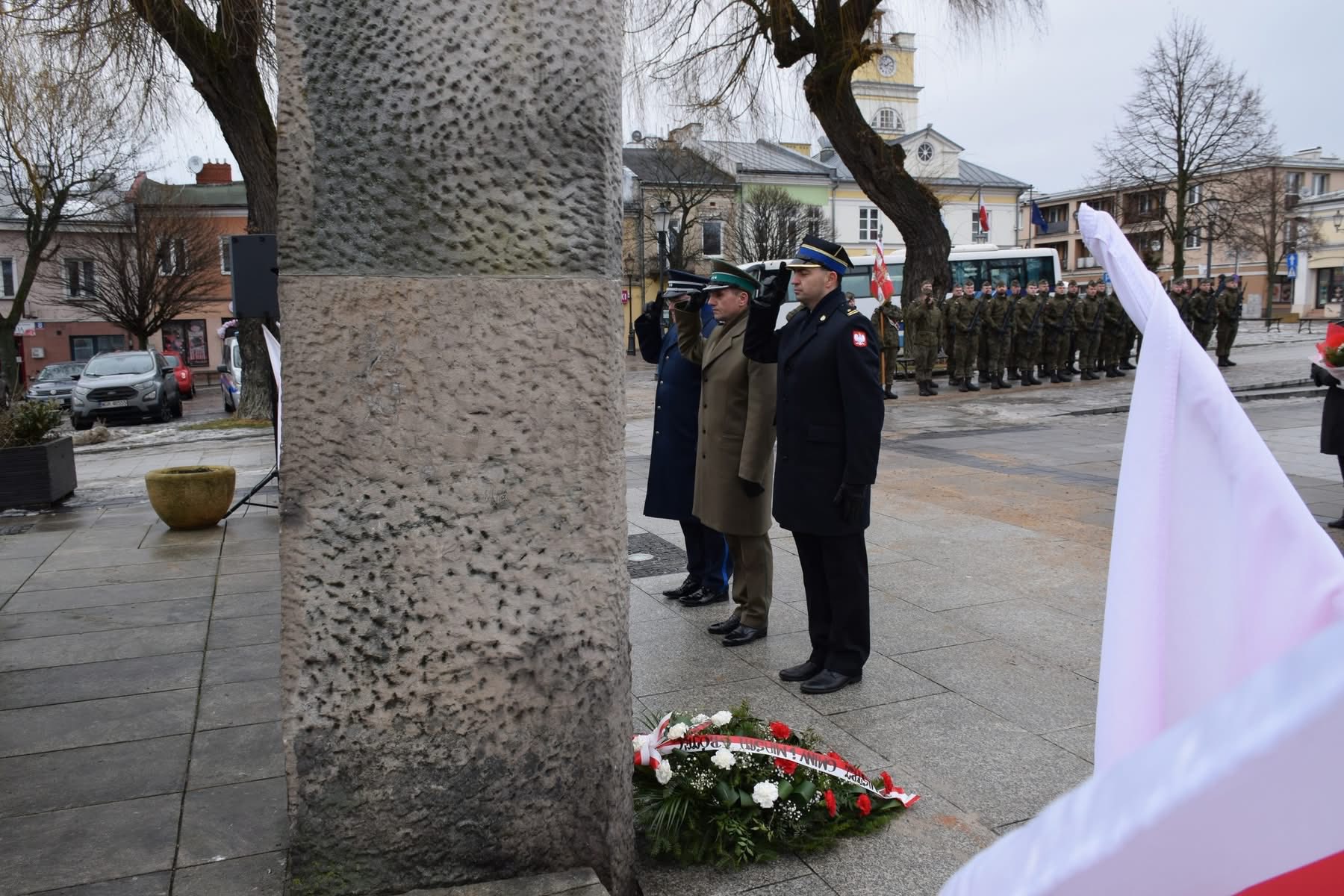 Na Placu Wolności w Grójcu w dniu 13 lutego 2026 roku Zastępca Komendanta Powiatowego Państwowej Straży Pożarnej w Grójcu mł. bryg. Grzegorz Michalski wziął udział w 84. rocznicy powstania Armii Krajowej - Narodowy Dzień Pamięci Żołnierzy Armii Krajowej.