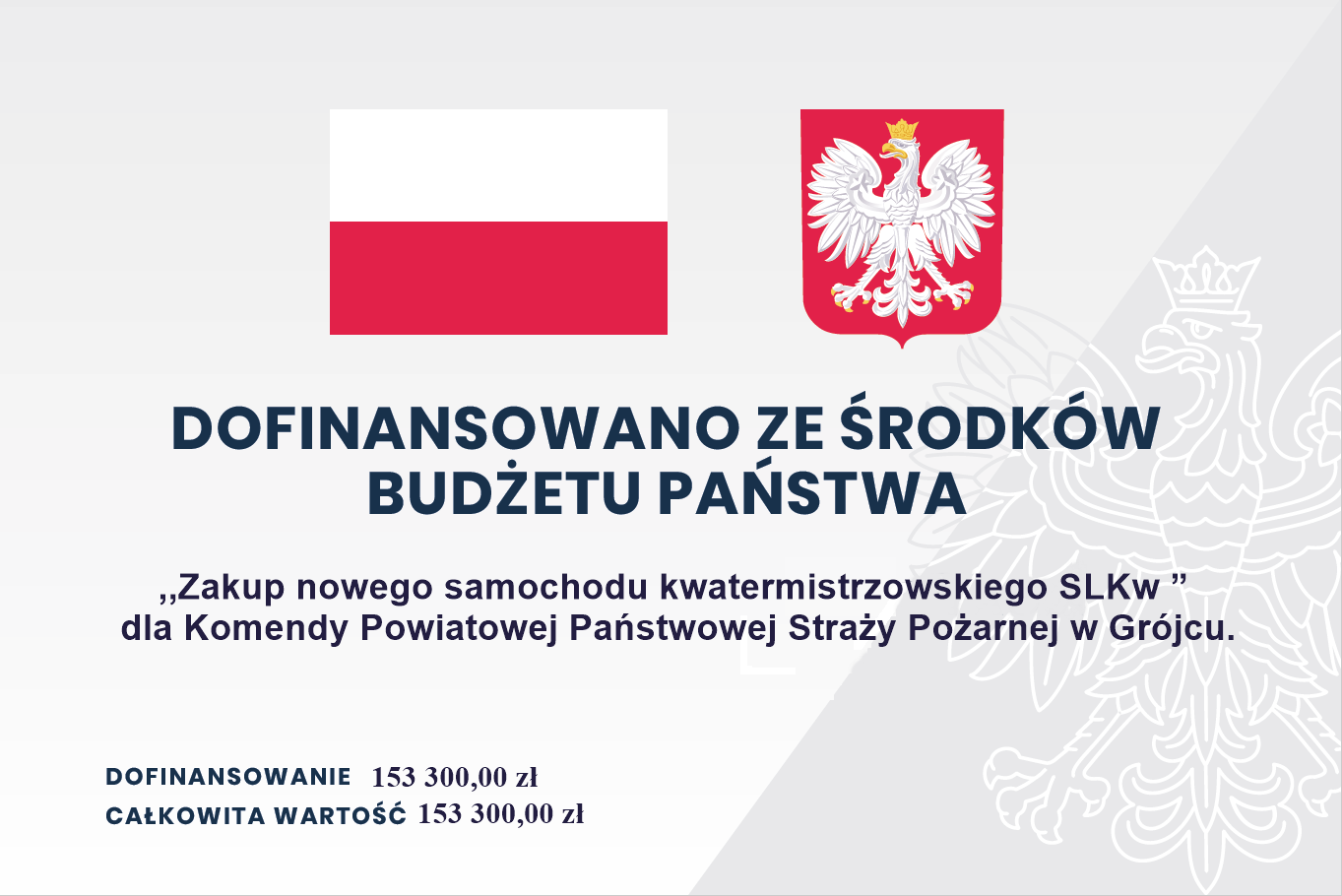 Pojazd zakupiony został w ramach przeprowadzonego postępowania numer PT.2370/2/2021 pn. ,,Zakup nowego samochodu kwatermistrzowskiego SLKw ” dla Komendy Powiatowej Państwowej Straży Pożarnej w Grójcu. .