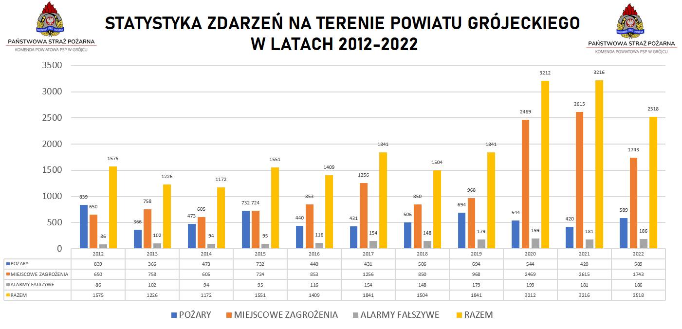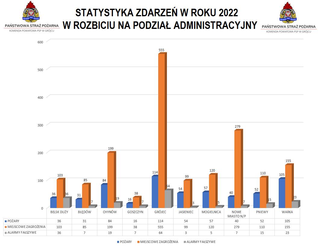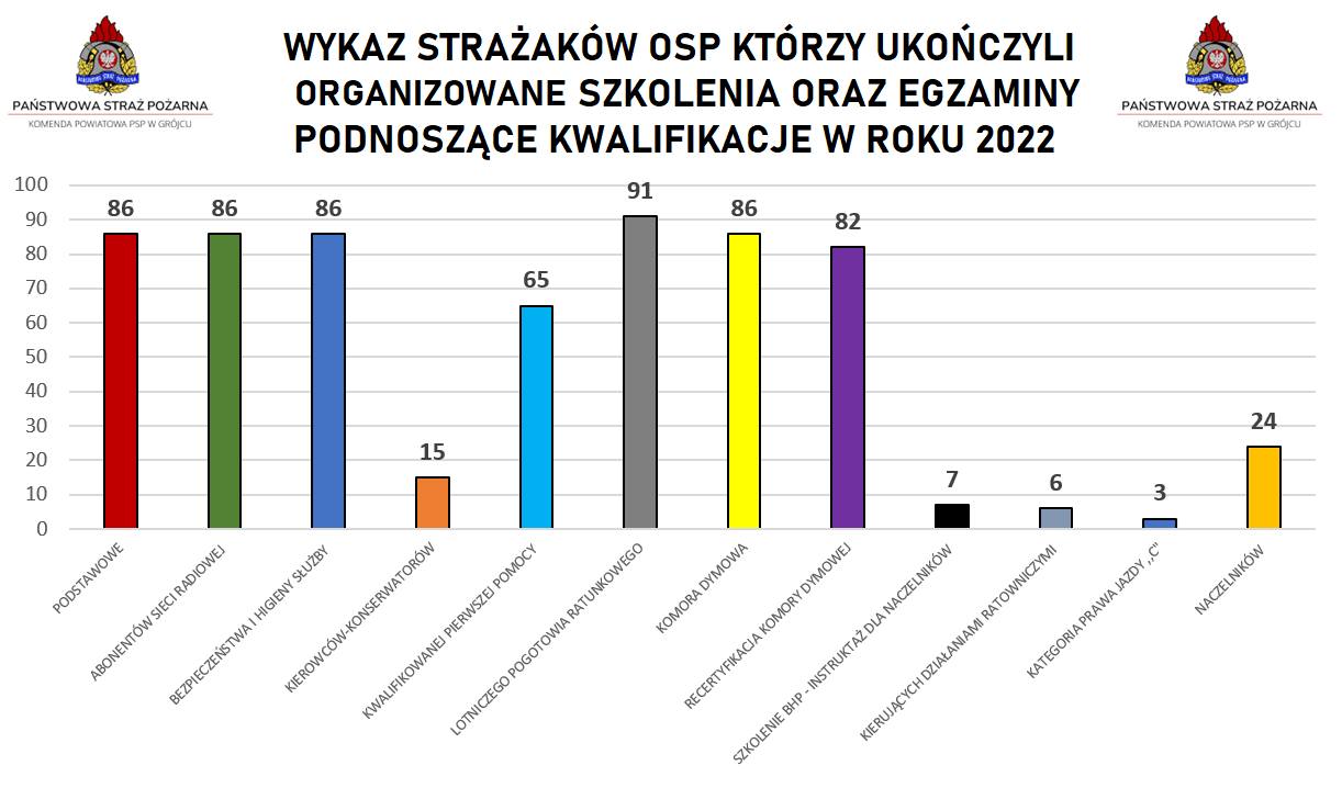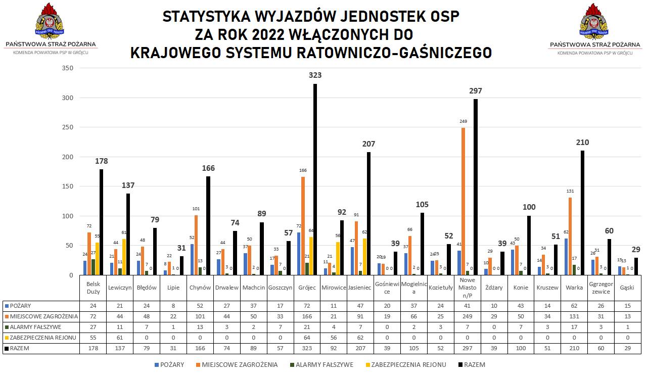Podsumowanie wyjazdów do działań ratowniczo-gaśniczych, szkoleń oraz egzaminów realizowanych dla strażaków Ochotniczych Straży Pożarnych z terenu powiatu grójeckiego za rok 2022.