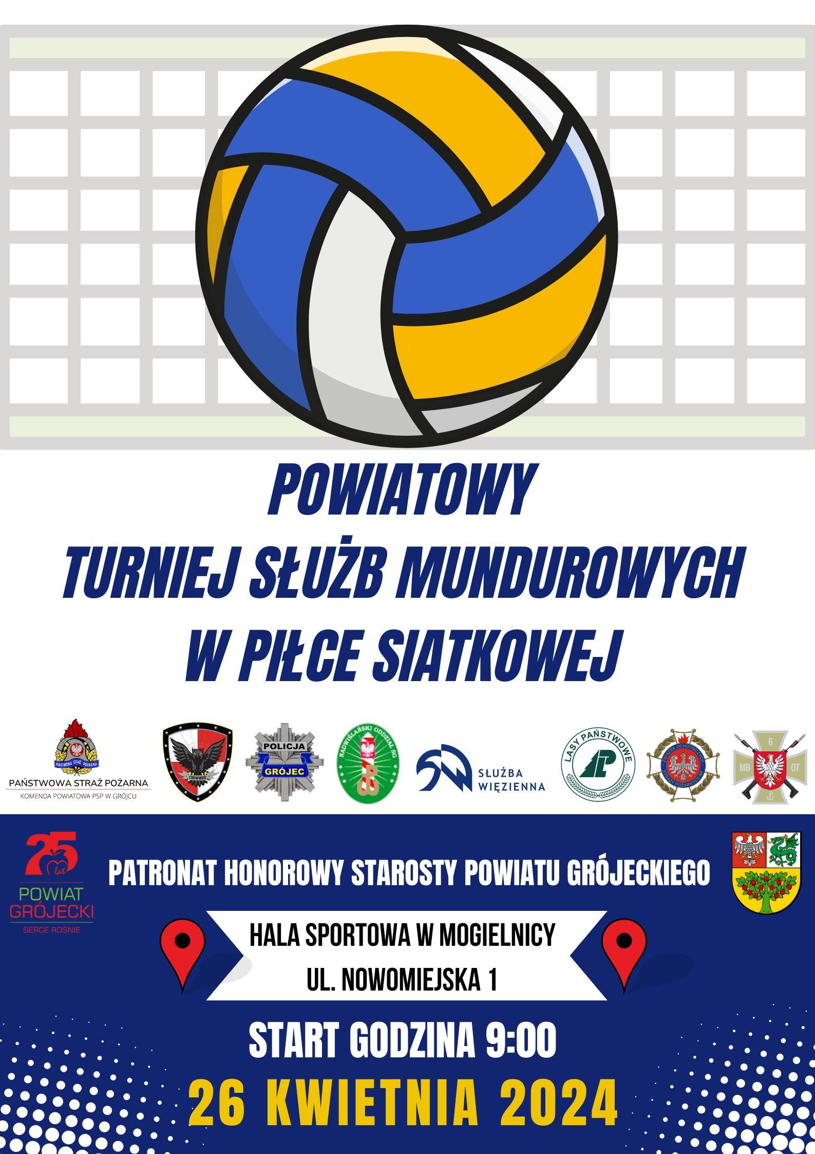 W dniu 26 kwietnia Komenda Powiatowa Państwowej Straży Pożarnej w Grójcu będzie współorganizatorem Powiatowego Turnieju Służb Mundurowych w Piłce Siatkowej. W rywalizacji wezmą udział funkcjonariusze wszystkich służb mundurowych powiatu grójeckiego. Turniej objął patronatem honorowym Starosta Powiatu Grójeckiego.