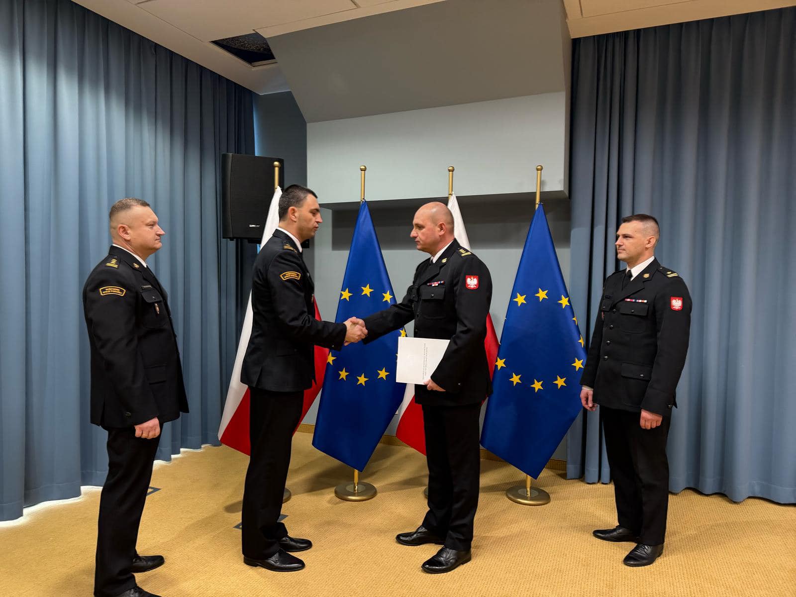 W dniu 14 marca 2025 roku w siedzibie Komendy Wojewódzkiej PSP w Warszawie Zastępca Mazowieckiego Komendanta Wojewódzkiego Państwowej Straży Pożarnej st. bryg. Maciej Bieńczyk uroczyście wręczył decyzję personalną w sprawie powołania na stanowisko Zastępcy Komendanta Powiatowego PSP w Grójcu mł. bryg. Grzegorzowi Michalskiemu. W uroczystości wziął udział Komendant Powiatowy PSP w Grójcu mł. bryg. Marcin Błoński oraz Naczelnik Wydziału Kadr st. bryg. Marcin Konecki.