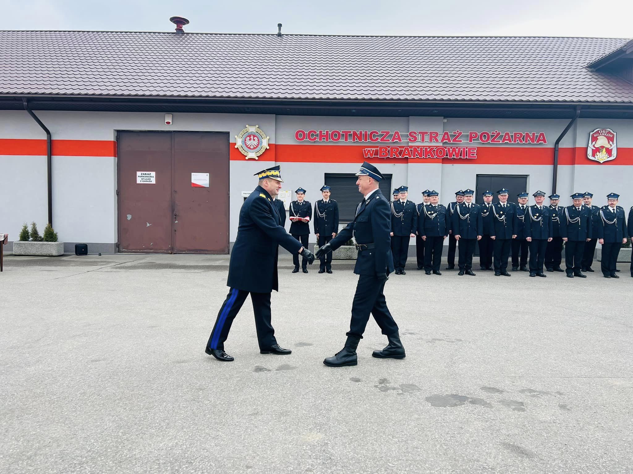W dniu 03.03.2023r. na terenie jednostki Ochotnicza Straż Pożarna w Brankowie (powiat grójecki) odbyła się uroczysta zbiórka z okazji przekazania ciężkiego samochodu gaśniczego marki MAN