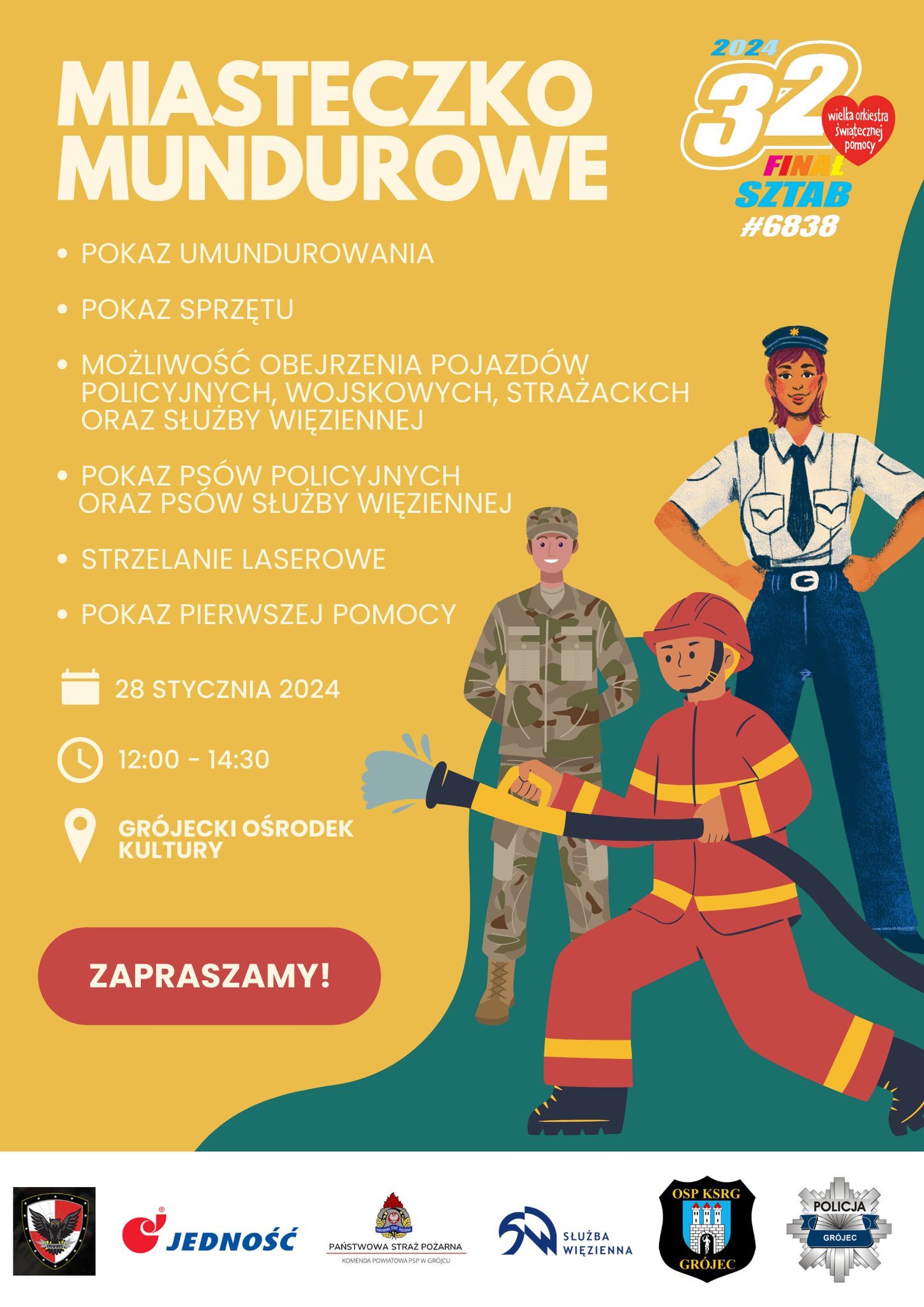 Podczas finału 28 stycznia zapraszamy także do odwiedzenia Naszego Miasteczka Mundurowego, gdzie będzie możliwość skorzystać z atrakcji przygotowanych przez lokalne służby mundurowe!