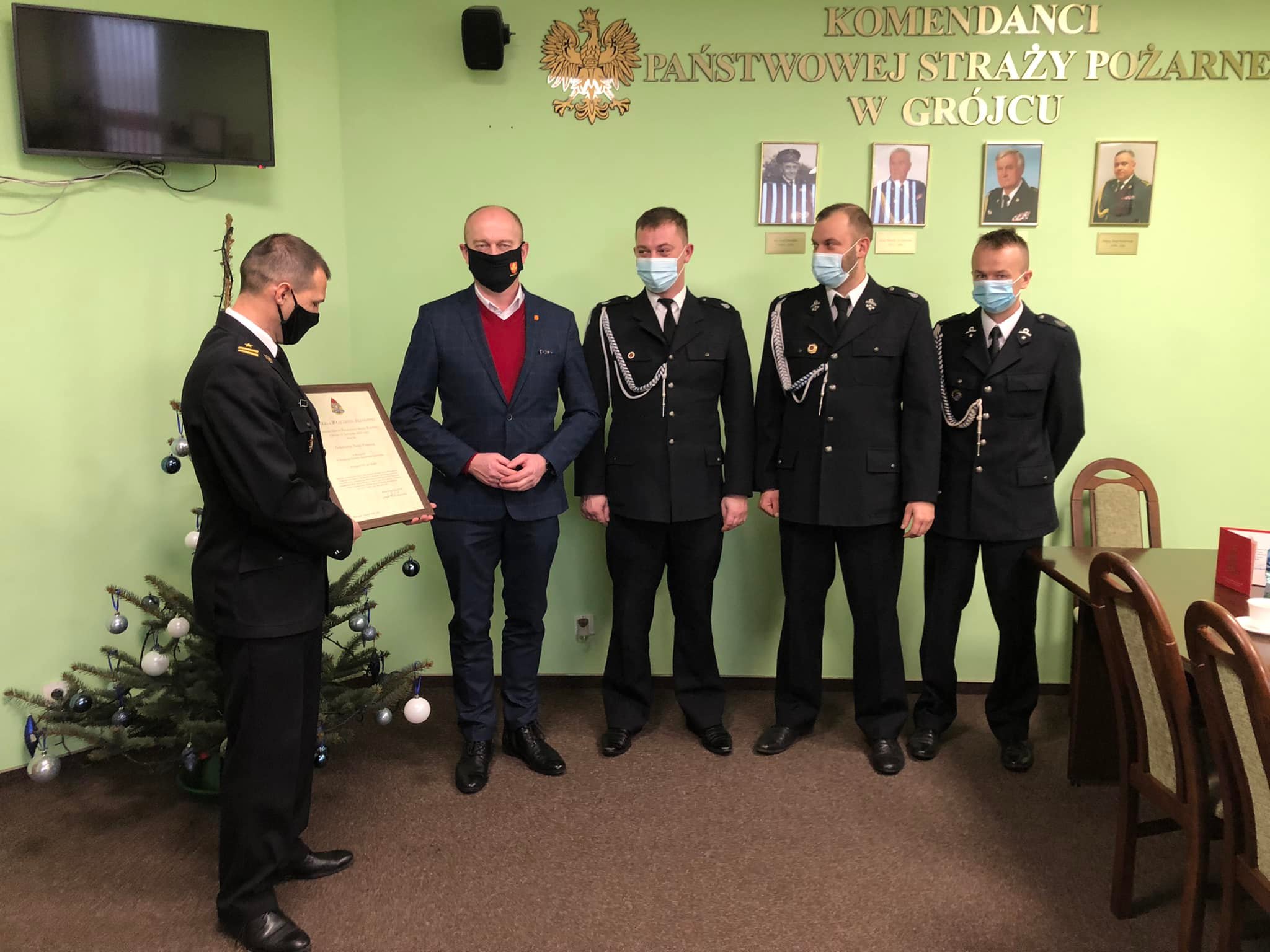 W uroczystości udział wziął Komendant Powiatowy Państwowej Straży Pożarnej w Grójcu mł. bryg. Marcin Błoński, Wójt Gminy Pniewy Ireneusz Szymczak oraz delegacja jednostki OSP Kruszew z Prezesem Łukaszem Piotrkowiczem.