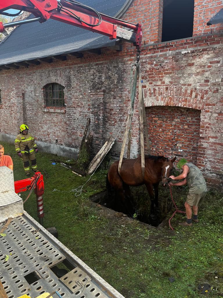 W dniu 18 września o godz. 13:02 dyżurny SKKP Państwowej Straży Pożarnej w Grójcu odebrał zgłoszenie w którym to w miejscowości Kośmin koń wpadł do zbiornika wodnego i nie jest w stanie samodzielnie wyjść. Na miejsce zdarzenia zadysponowano zastępy PSP i OSP. Wydobycie zwierzęcia odbyło się dzięki pomocy byłego funkcjonariusza naszej Komendy, który przy pomocy HDS-a pomógł w ewakuacji. Zwierzę udało się wyciągnąć zdrowe i przekazane zostało pod opiekę właściciela.