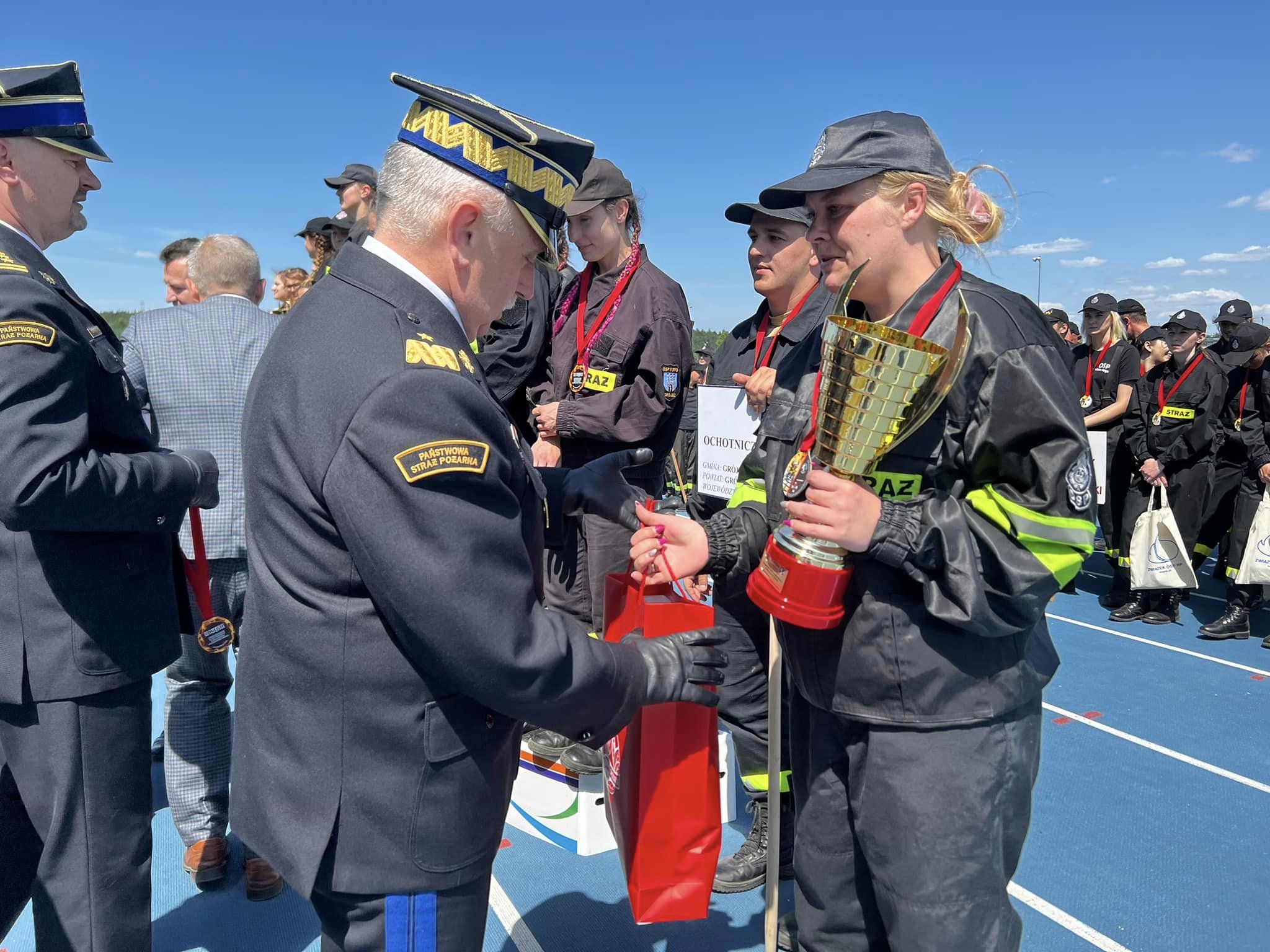 Na zakończenie zawodów wręczone zostały puchary, medale, grawertony, sprzęt ratowniczo-gaśniczy w tym także puchary dla zwycięzców w poszczególnych konkurencjach sportowych.