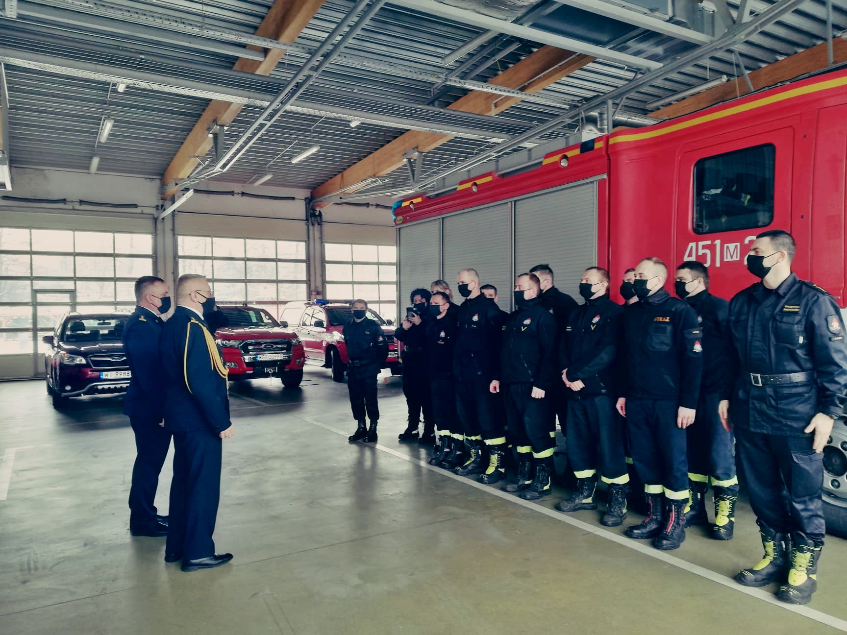 Zastępca komendanta na wstępie podziękował strażakom za ofiarną służbę i zaangażowanie podczas prowadzonych akcji ratowniczo-gaśniczych. Następnie dokonany został przegląd stanu technicznego obiektu strażnicy, wyposażenia oraz sprzętu ratowniczo-gaśniczego który jest w dyspozycji Komendy.