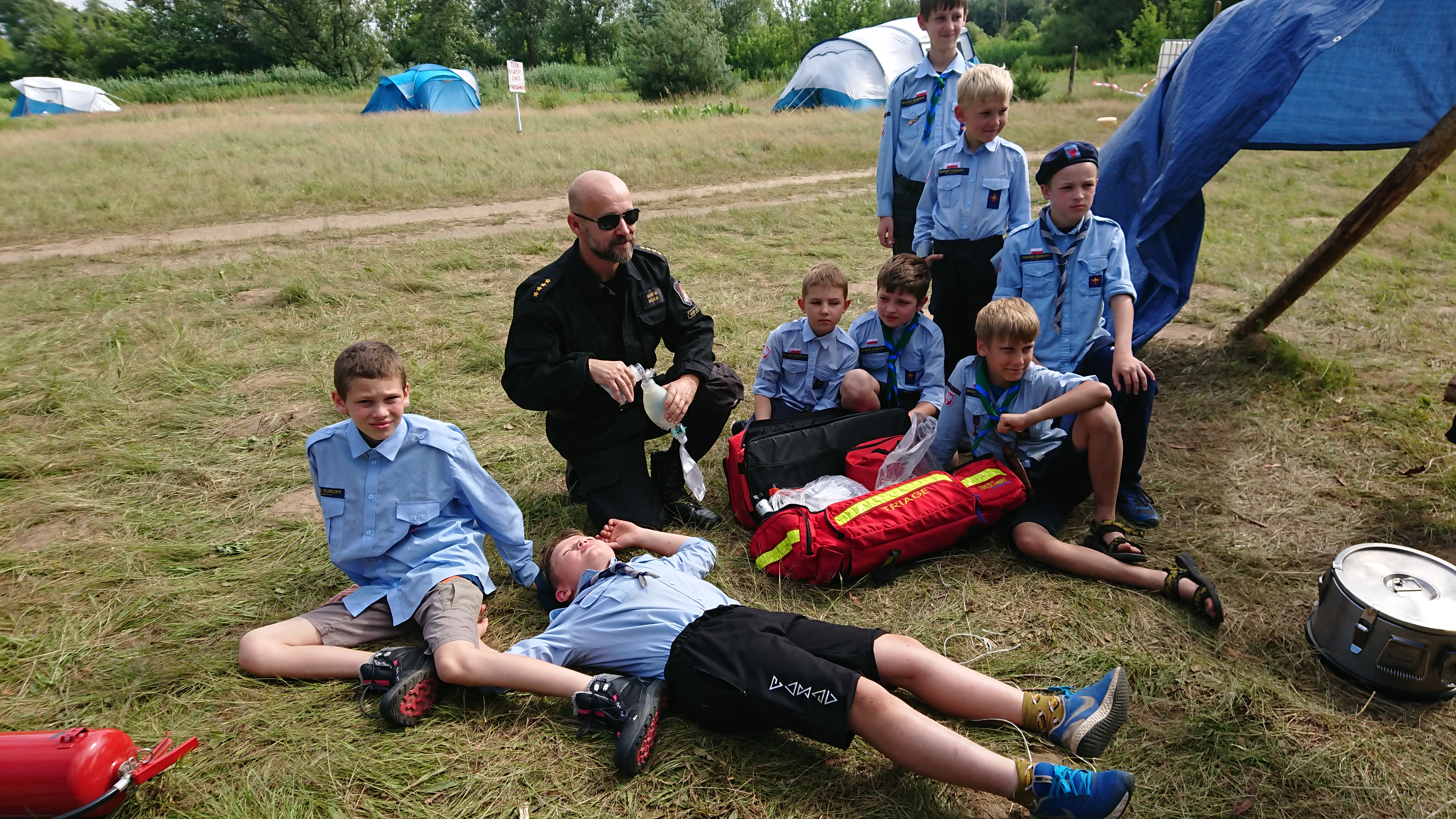 Podczas spotkania funkcjonariusze zapoznali się z organizacją obozowiska, planem dnia oraz zasadami bezpieczeństwa wdrażanymi w sytuacji wystąpienia ostrzeżeń pogodowych. Funkcjonariusze przeprowadzili instruktaż użycia gaśnic, prowadzenia resuscytacji krążeniowo – oddechowej oraz przekazali informację na temat bezpiecznego wypoczynku nad wodą, bezpiecznego zachowania w ruchu drogowym, postępowania w sytuacjach zagrożenia (np. nagłych zmianach warunków atmosferycznych) oraz ustalili sposoby kontaktu ze strażą pożarną - obóz harcerski jest w stałym kontakcie telefonicznym oraz radiowym ze Stanowiskiem Kierowania Komendanta Powiatowego PSP.