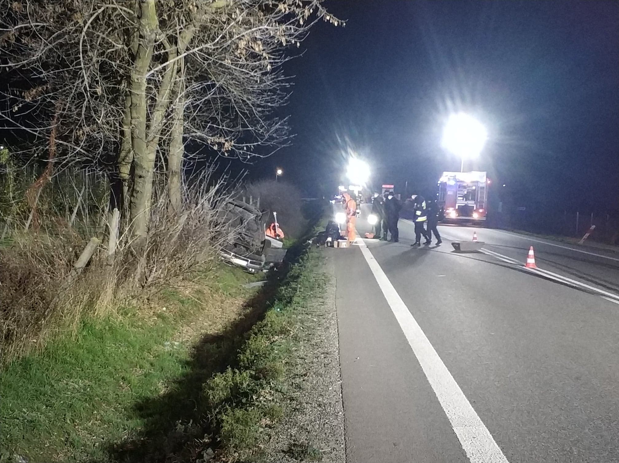 W środę 24 listopada o godzinie 17:06 dyżurny Stanowiska Kierowania Komendanta Powiatowego Państwowej Straży Pożarnej w Grójcu odebrał zgłoszenie o kolizji drogowej z udziałem samochodu ciężarowego na trasie nr 50 w miejscowości Bikówek gmina Grójec. Po dojeździe na miejsce zdarzenia zastano pojazd osobowy który dachował i znajduje się w przydrożnym rowie. Po przeprowadzonym rozpoznaniu ustalono że brak jest osób poszkodowanych jednak w samochodzie znajduje się liczna ilość substancji chemicznych. Na miejsce zdarzenia zadysponowana została specjalistyczna grupa ratownictwa chemiczno-ekologicznego z Jednostki Ratowniczo-Gaśniczej nr 6 w Warszawie wraz z funkcjonariuszami Wojewódzkiego Stanowiska Kierowania Komendanta Wojewódzkiego PSP.