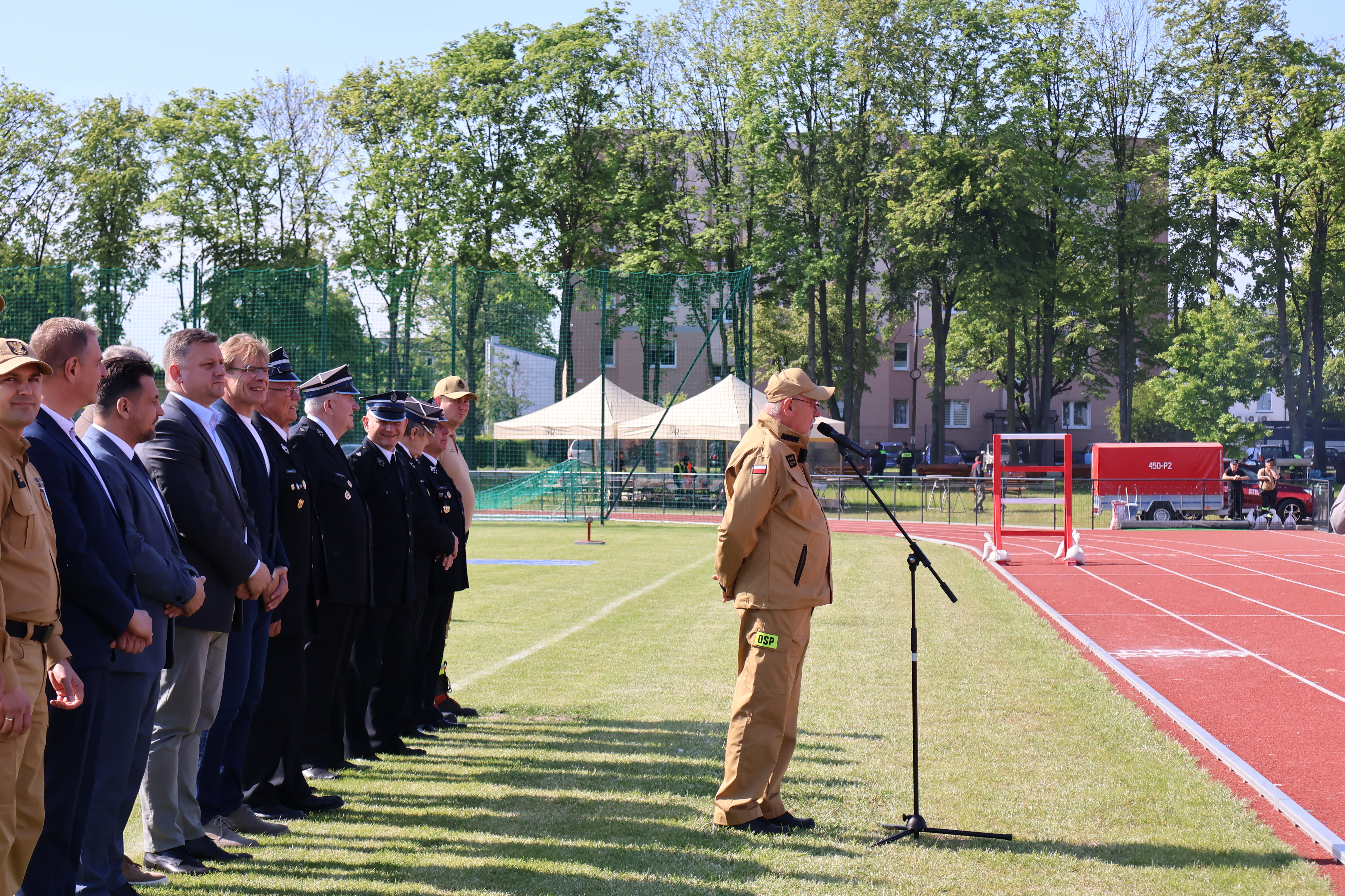 Zawody uroczyście otworzył Wiceprezes Zarządu Oddziału Powiatowego ZOSP RP dh Sławomir Maroszek który powitał zaproszonych gości w osobach : Starostę Powiatu Grójeckiego Krzysztofa Ambroziaka, Wicestarostę Adama Balcerowicza, przedstawiciela zarządu powiatu grójeckiego Andrzeja Zarębę, Zastępcę Burmistrza Gminy i Miasta Grójec Jarosława Rupiewicza, Komendanta Powiatowego PSP w Grójcu mł. bryg Marcina Błońskiego z Zastępcą mł. bryg. Grzegorzem Michalskim, Komisję Sędziowską złożoną z funkcjonariuszy KP PSP Grójec, przedstawicieli Zarządu Powiatowego oraz Zarządów Gminnych ZOSP RP oraz gospodarza obiektu czyli Dyrektora GOS Mazowsze Ireneusza Wojciechowskiego.