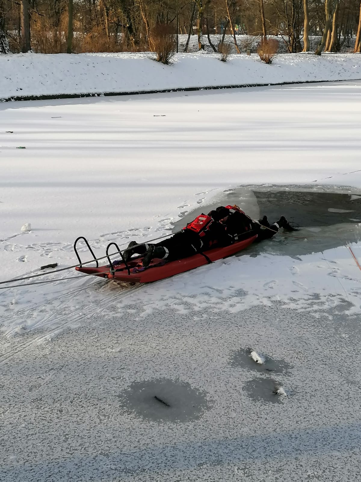 W dniu 01.02.2021 na terenie Parku Miejskiego w Gryficach odbyły sie ćwiczenia funkcjonariuszy JRG PSP Gryfice z ratownictwa lodowego przy uzyciu sań lodowych. Przećwiczono elementy ratowania poszkodowanych oraz techniki samoratowania,