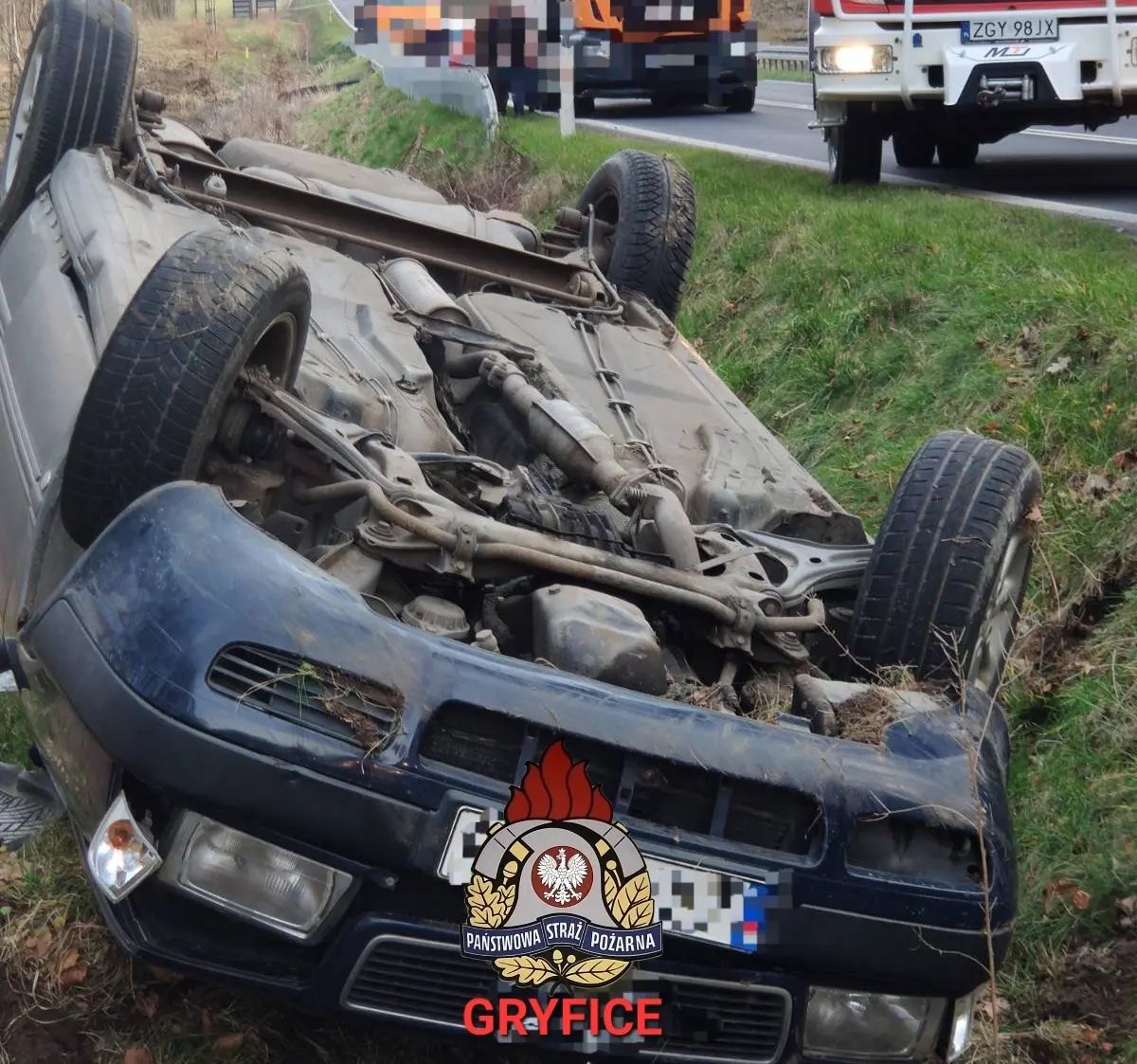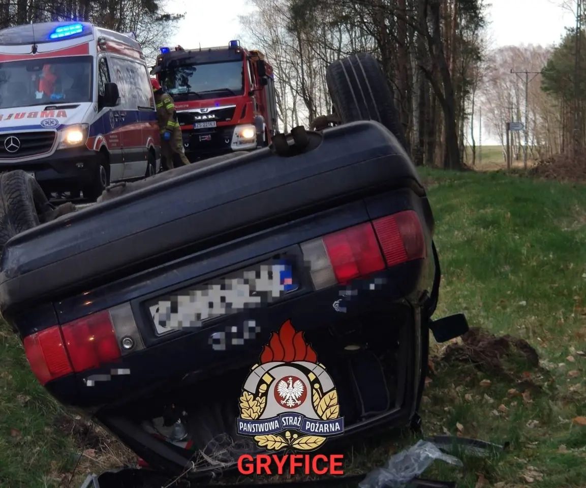 Godz.16:03 DW109 na wysokości parkingu Rejowice - dachowanie pojazdu osobowego. Dwie osoby zostały poszkodowane. Na czas trwania działań ruch na drodze zablokowany. W działaniach biorą udział zastępy z JRG PSP Gryfice oraz OSP Płoty.