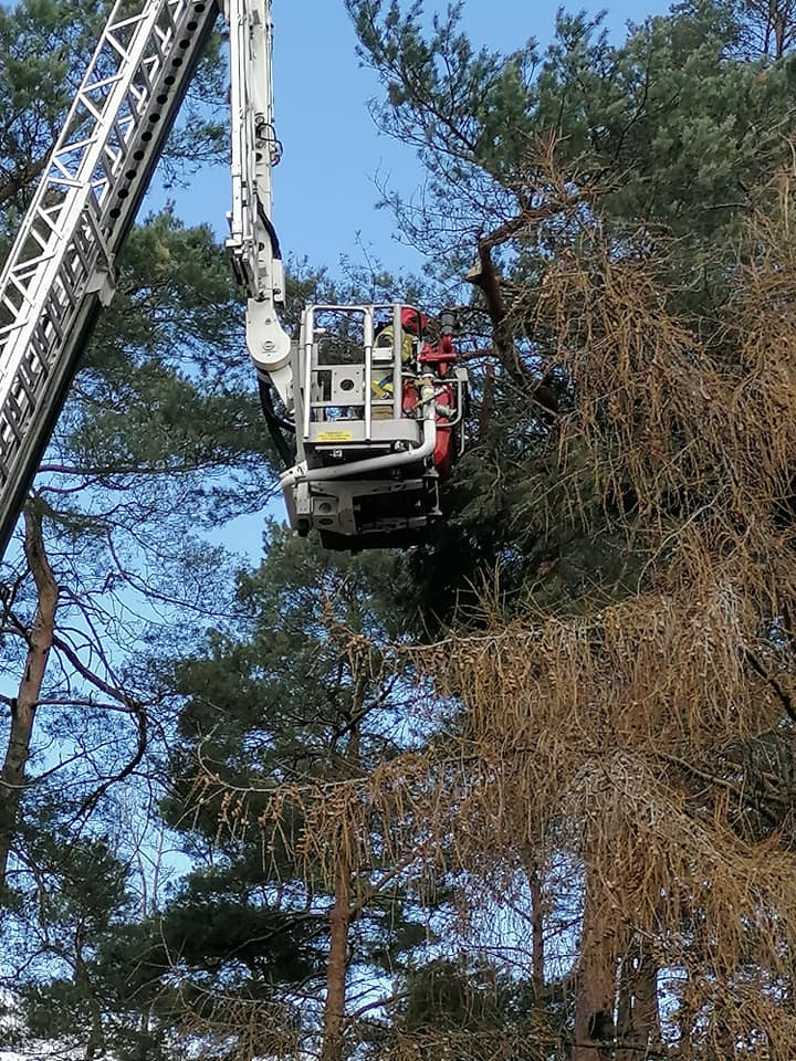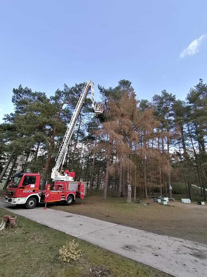 W dniu 06.04.2021r. o godz.12:22 do SKKP Gryfice wpłynęła informacja o zwisającej gałęzi na jednym z wjazdów na terenie szpitala w Gryficach. W działaniach brały udział 2 zastępy z JRG PSP Gryfice.