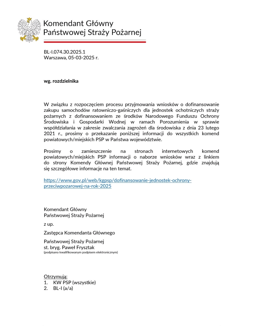 Dofinansowanie jednostek ochrony przeciwpożarowej na rok 2025