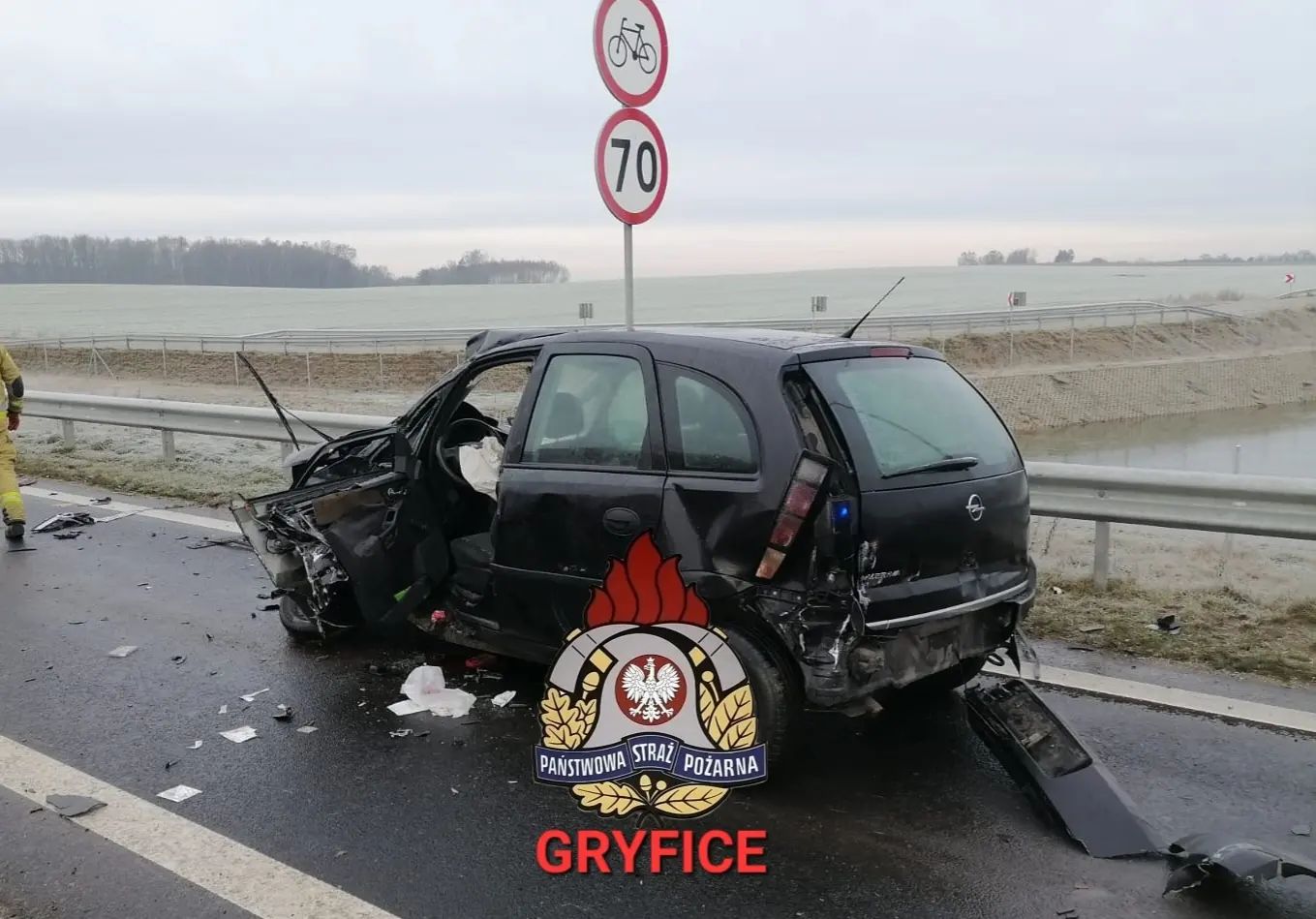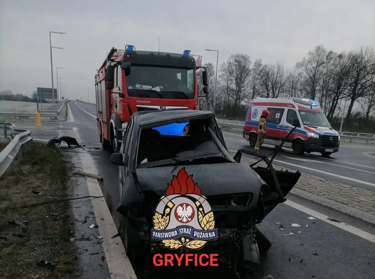 Godz.11:15 Obwodnica Gryfic, skrzyżowanie Niekładź - Prusinowo - wypadek drogowy. Jedna osoba poszkodowana - zabrana przez zespół PRM do gryfickiego szpitala. Ruch wahadłowy. W działaniach zastępy z JRG PSP Gryfice, Policja oraz zespół PRM.