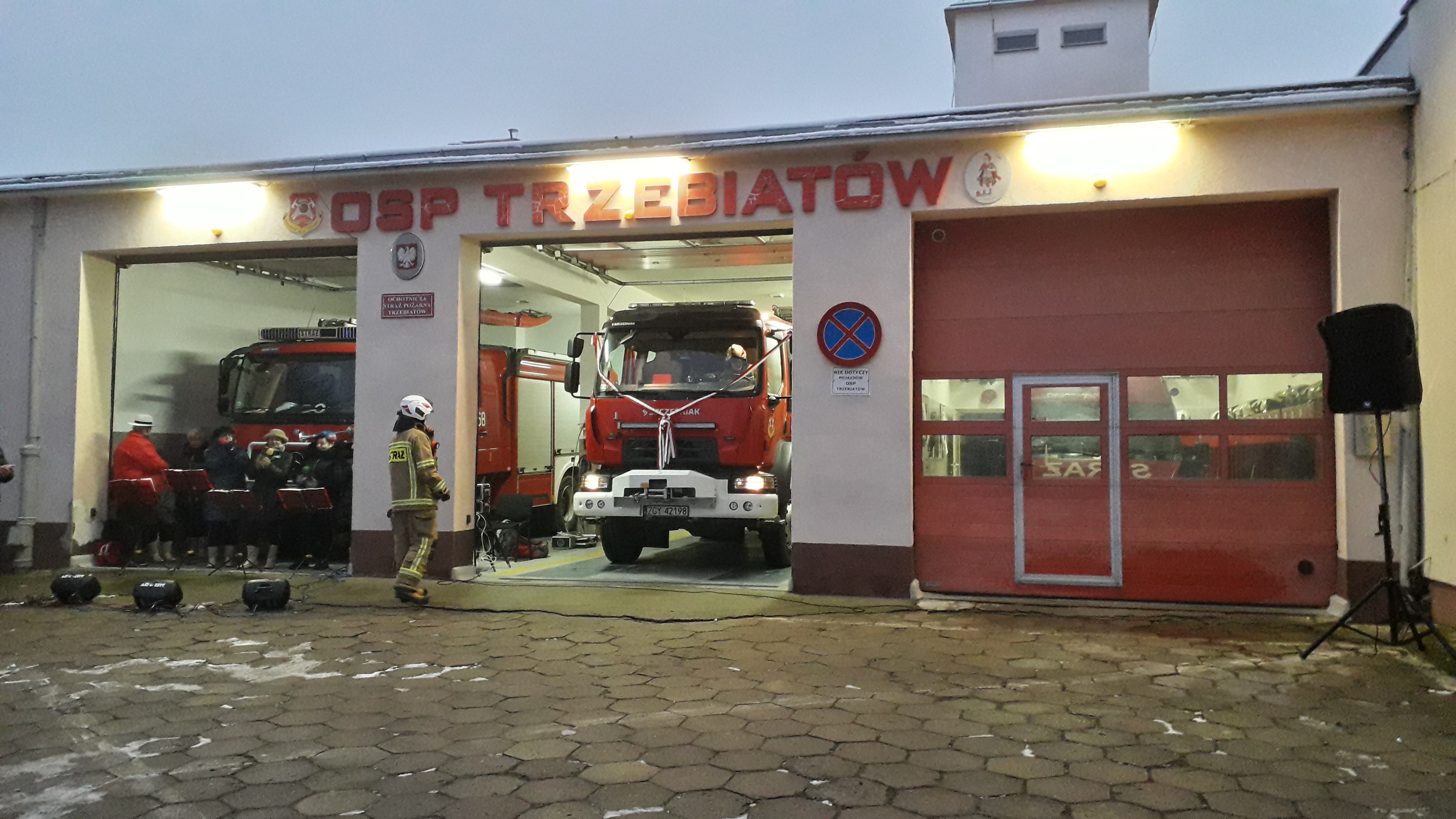 W dniu 11.12.2021 przed remizą OSP Trzebiatów odbyło się oficjalne przekazanie i poświęcenie nowego wozu bojowego na podwoziu marki Renault.  Gościem Honorowym uroczystości był Poseł na Sejm RP Michał Jach. Wśród zaproszonych gości byli m.in. Zachodniopomorski Komendant Wojewódzki PSP st.bryg. Jarosław Tomczyk, Komendant Powiatowy PSP w Gryficach bryg. Andrzej Gołdyn, Komendant Powiatowy PSP w Goleniowie st.bryg. Arkadiusz Skrzypczak, radna miejska Małgorzata Agata Wysoczańska , Wiceburmistrz Trzebiatowa Grzegorz Olejniczak. Poświęcenia dokonał Proboszcz trzebiatowskiej parafii – ks. prałat Andrzej Dowal.