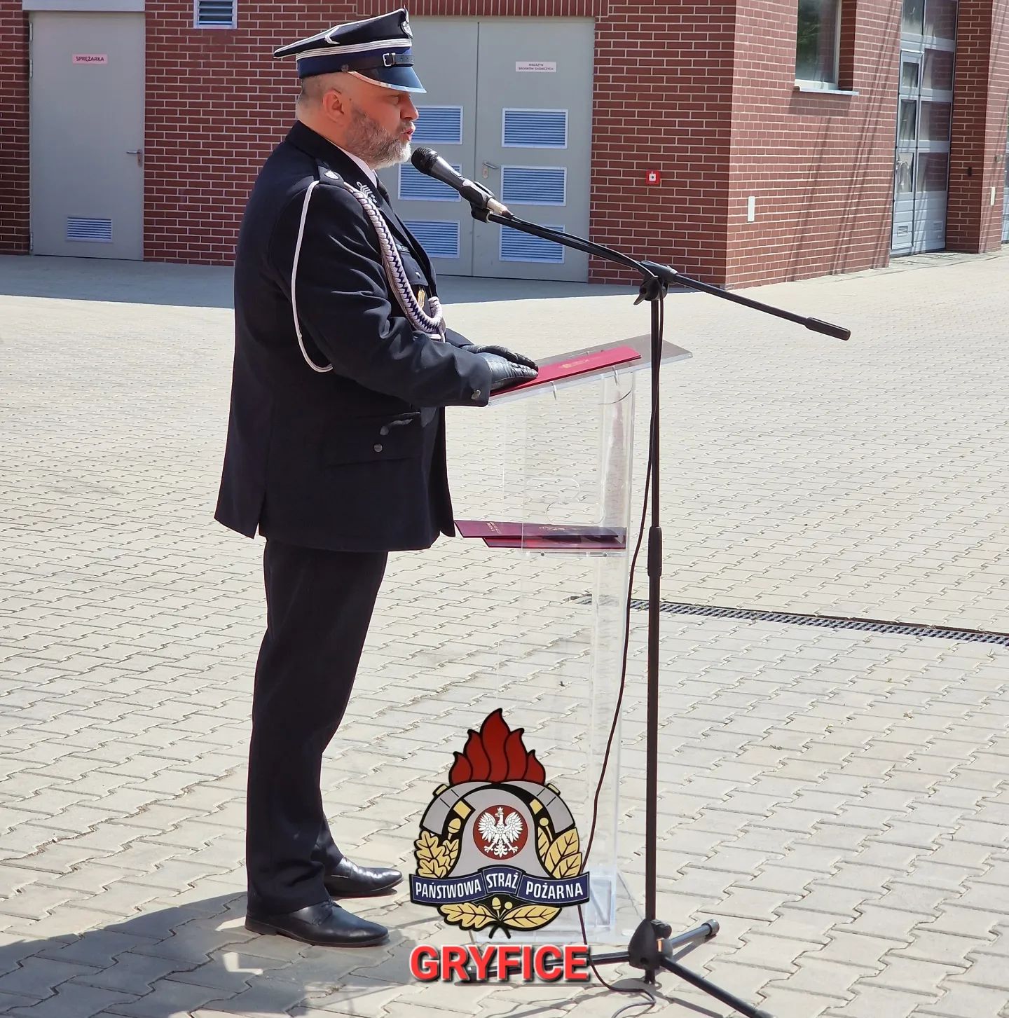 W dniu dzisiejszym na terenie Komendy Powiatowej PSP Gryficach odbyły się Powiatowe Obchody Dnia Strażaka. Meldunek od Dowódcy kpt. Łukasza Góralskiego o rozpoczęciu uroczystości odebrał Zastępca Zachodniopomorskiego Komendanta Wojewódzkiego st.bryg. Robert Tarczyński.
