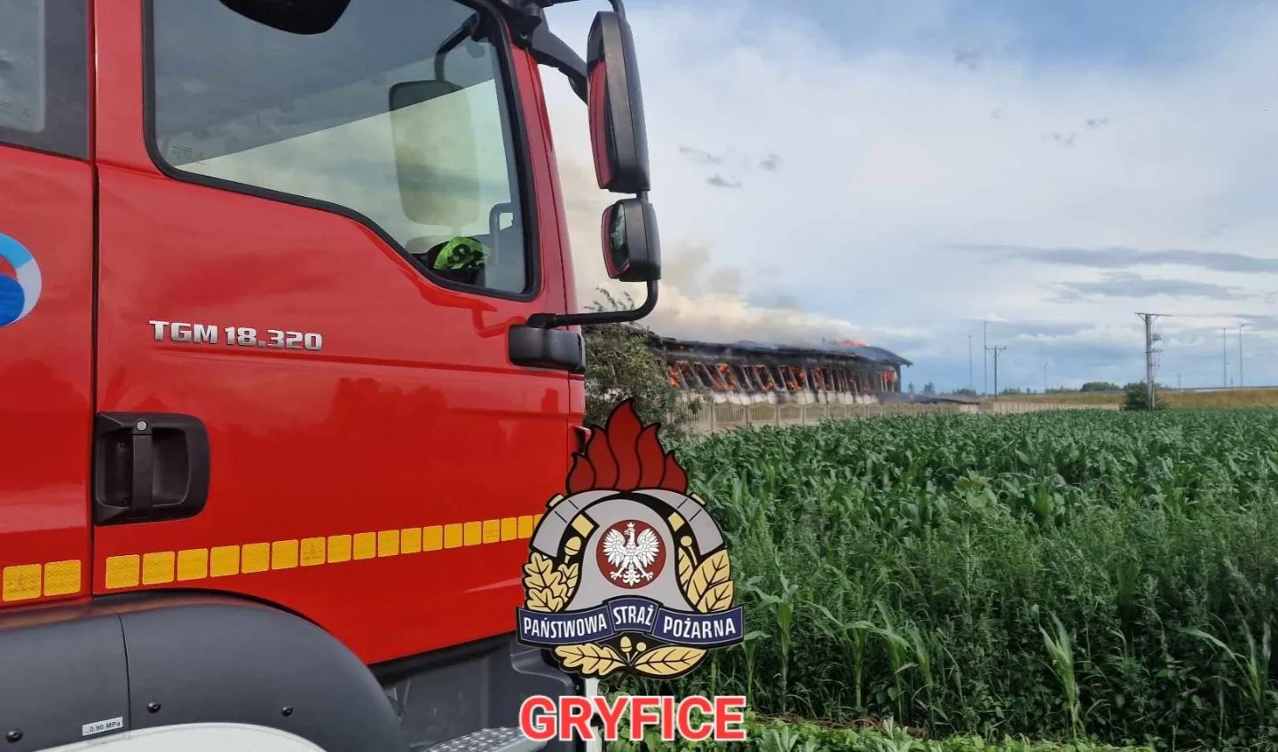 Godz.17:54 Karczewie - pożar dwóch hal ( jedna suszarnia, w drugiej zgromadzony sprzęt rolniczy). Brak osób poszkodowanych. W działaniach zastępy z KP PSP Gryfice, JRG PSP Gryfice, JRG PSP Świdwin, OSP Płoty, OSP Ościęcin, OSP Trzygłów oraz OSP Resko.