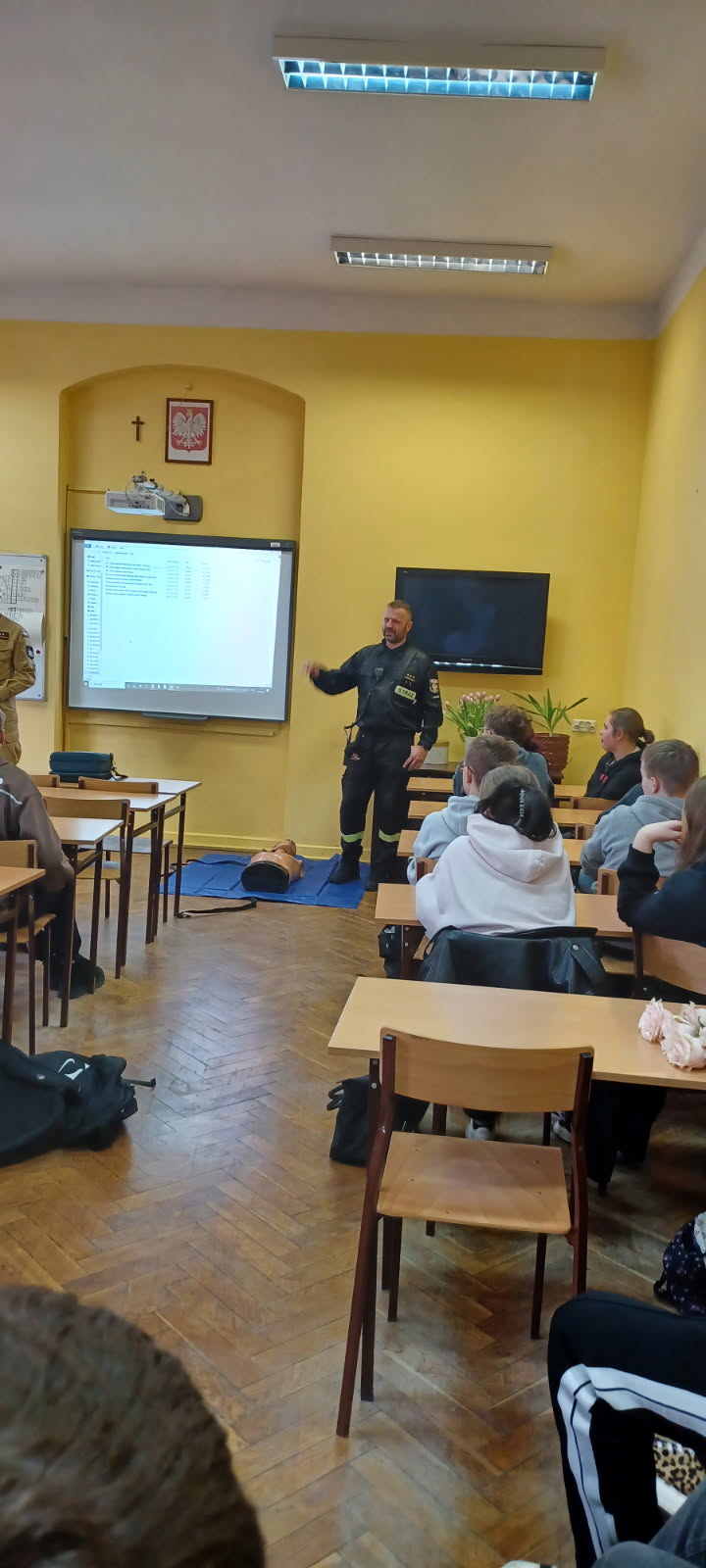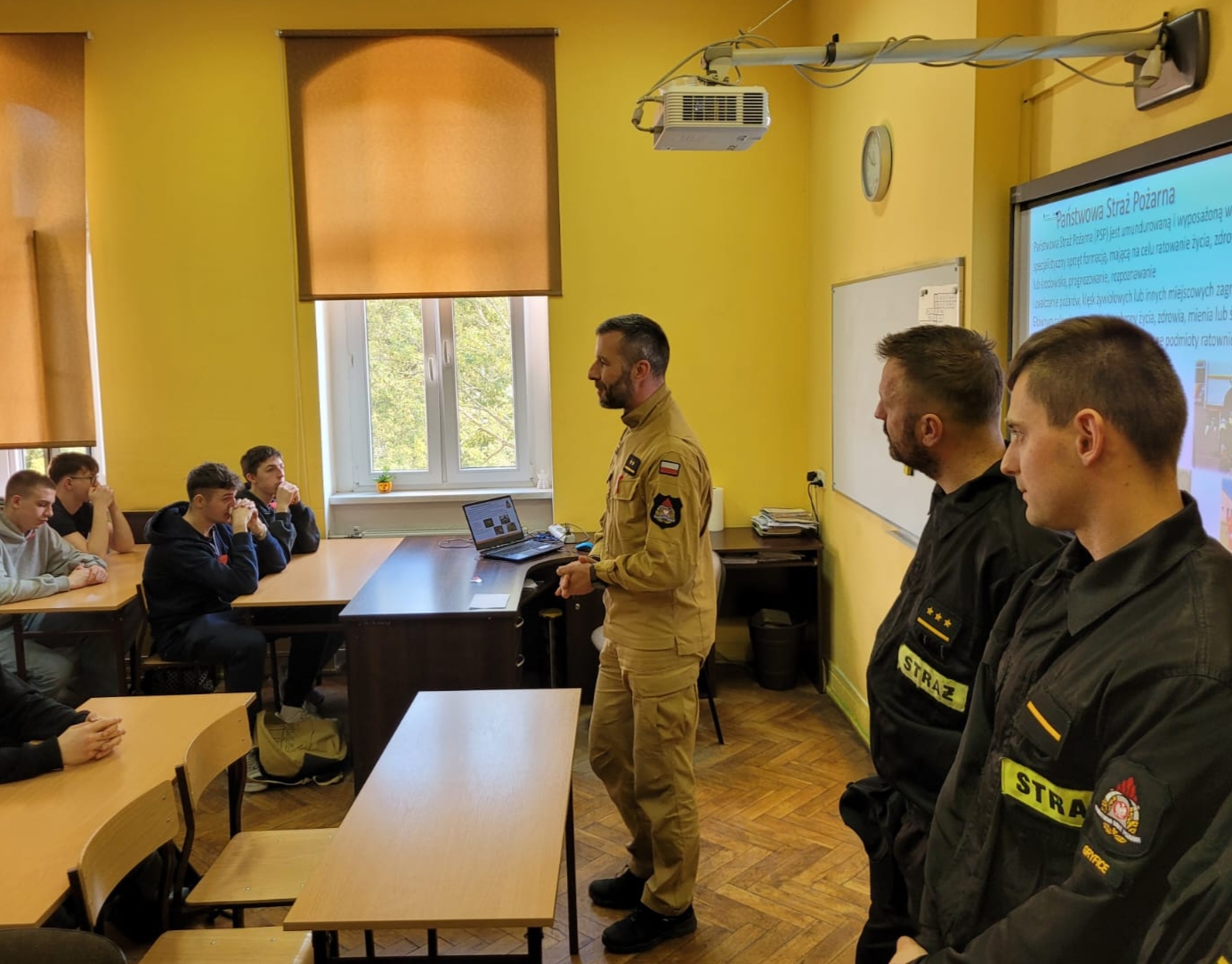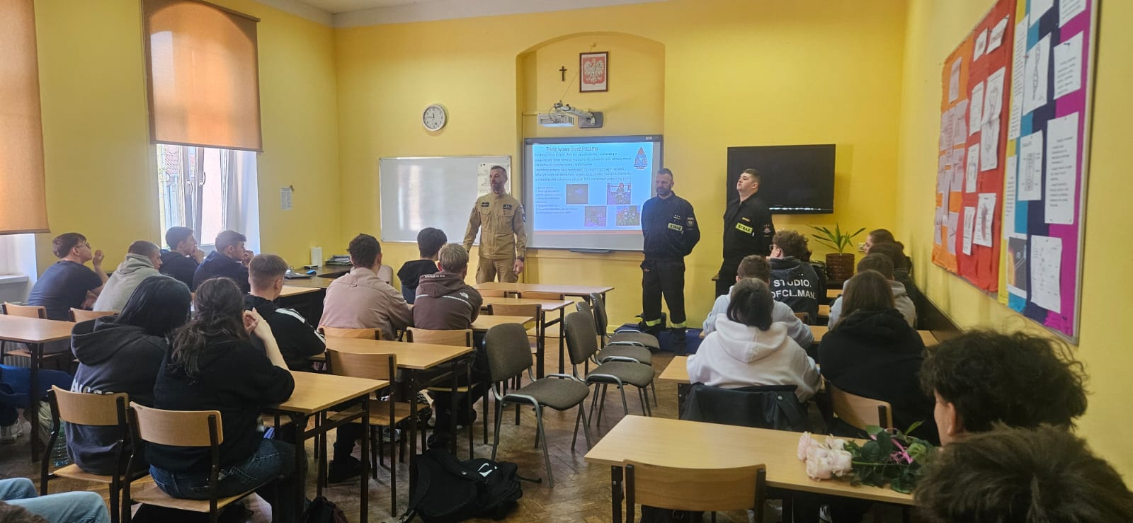 W dniu 24.03.2025 r. w Liceum Ogólnokształcącym przy ul. Wałowej w Gryficach funkcjonariusze KP PSP w Gryficach przeprowadzili prelekcję. W trakcie spotkania z młodzieżą przybliżono zagadnienia związane z służbą w Państwowej Straży Pożarnej, zasadami rekrutacji w procesie wolnego naboru, wymogami dla chętnych do podjęcia służby kandydackiej w szkołach pożarniczych i Akademii Pożarniczej, omówiono ogólne zasady zachowania w sytuacji zagrożenia pożarowego, przypomniano numery alarmowe i przeprowadzono pokaz pierwszej pomocy.