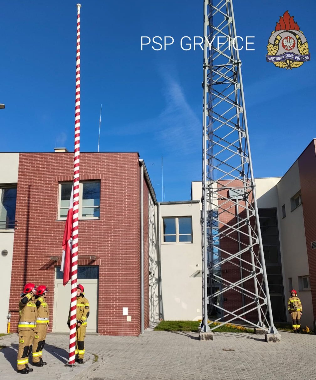 W dniu dzisiejszym 2 Maja w KP PSP Gryfice odbyła się uroczysta zmiana służby w związku z Dniem Flagi Rzeczypospolitej Polskiej, podczas której dokonano podniesienia Flagi na maszt.
