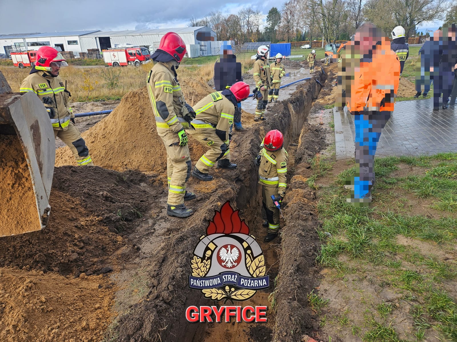 Godz.12:40 Trzebiatów ul.Miła - uszkodzona rura gazowa podczas prac ziemnych. Brak osób poszkodowanych. W działaniach brały udział zastępy z JRG PSP Gryfice, OSP Trzebiatów, Policja, Pogotowie Gazowe.