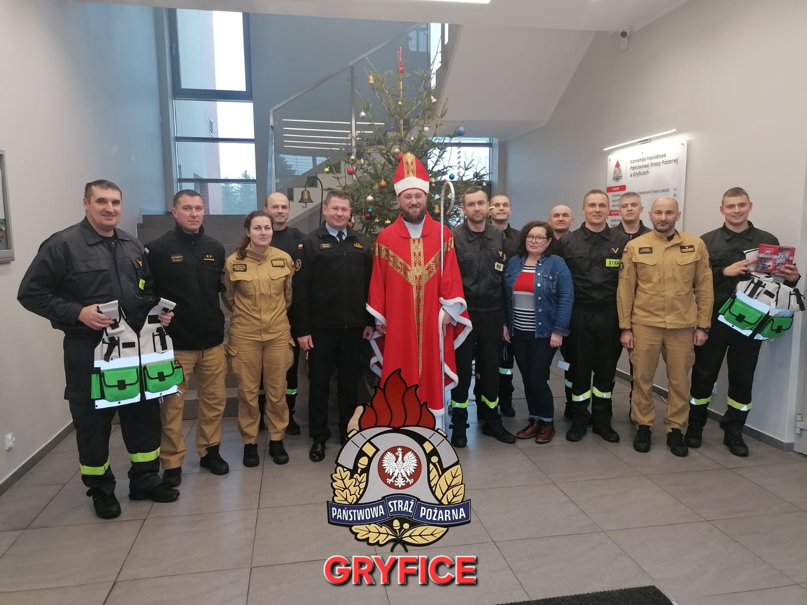 W dniu dzisiejszym Komendę Powiatową PSP w Gryficach odwiedził św.Mikołaj sprawiając miłą niespodziankę. Kapelan Powiatowy ZOSP ks. Marcin Smoliga przekazał na ręce Komendanta Powiatowego PSP bryg.Andrzeja Gołdyna sprzęt w postaci dwóch kamizelek taktycznych KDR oraz drobne słodkie upominki. Serdecznie dziękujemy!