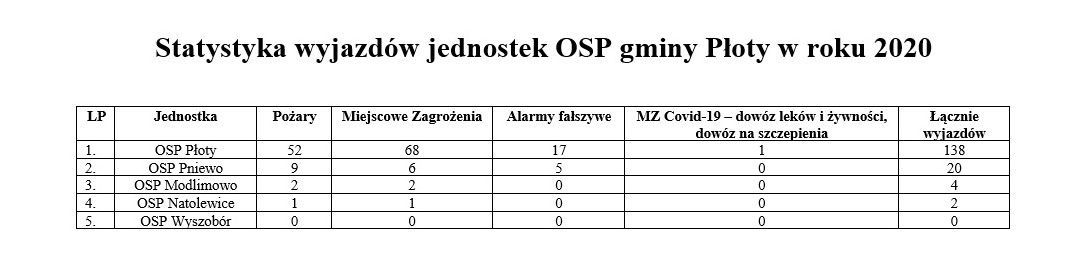 Wyjazdowość jednostek OSP z gminy Płoty 15.03.2021 Wyjazdowość jednostek OSP z gminy Płoty za rok 2020. Zdjęcia (1) Pokaż zdjęcie 1 z galerii.