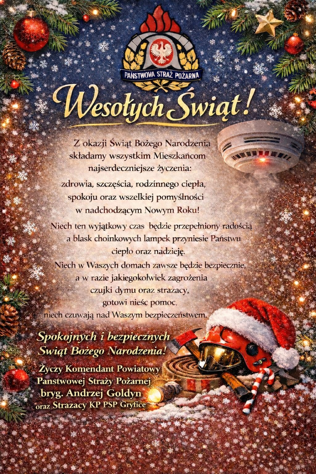 Życzenia Komendanta Powiatowego PSP w Gryficach