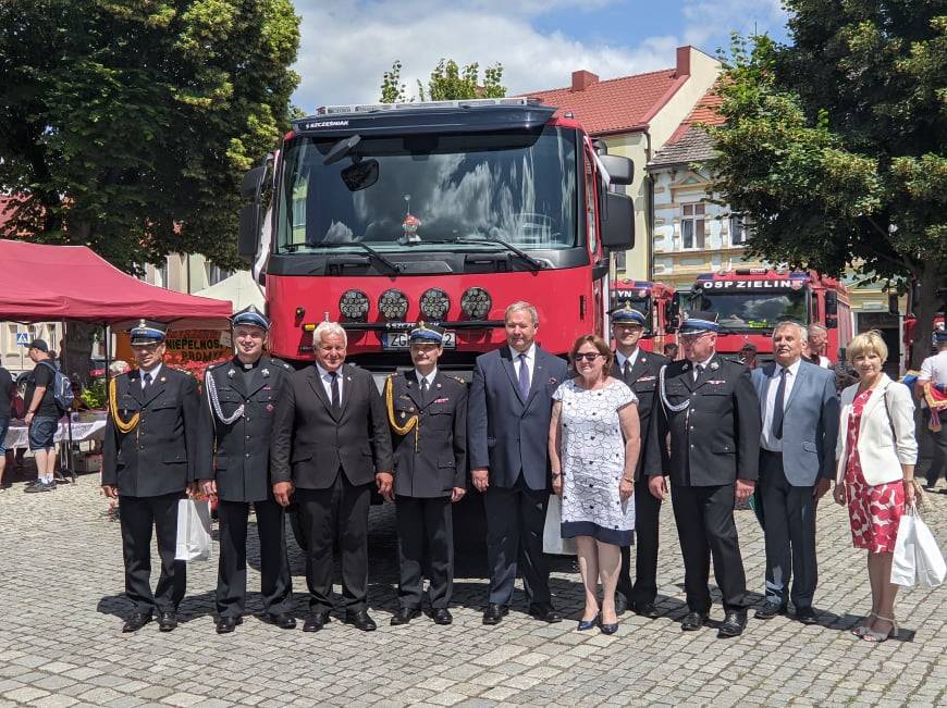 Podczas uroczystości nastąpiło poświęcenie i przekazanie dla strażaków z OSP Mieszkowice nowego ciężkiego samochodu ratowniczo-gaśniczego.