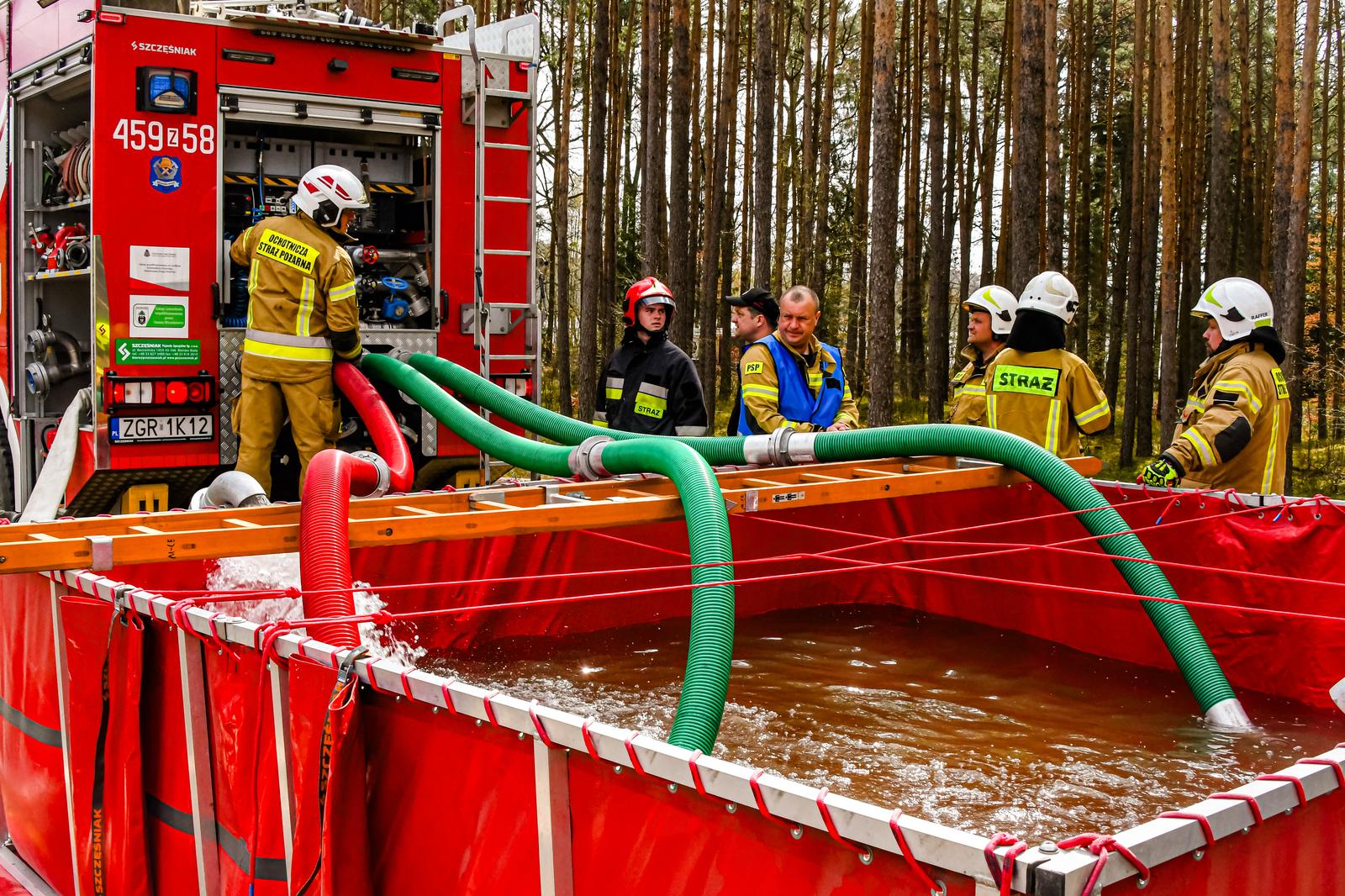 Głównym założeniem ćwiczeń było sprawdzenie umiejętności strażaków w dostarczaniu wody na duże odległości w trudnym terenie podczas pożaru lasu.