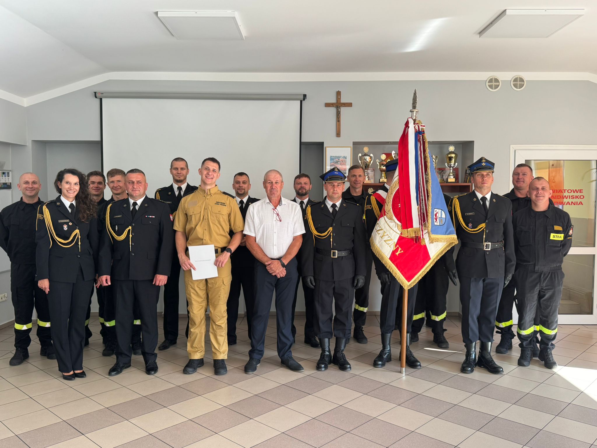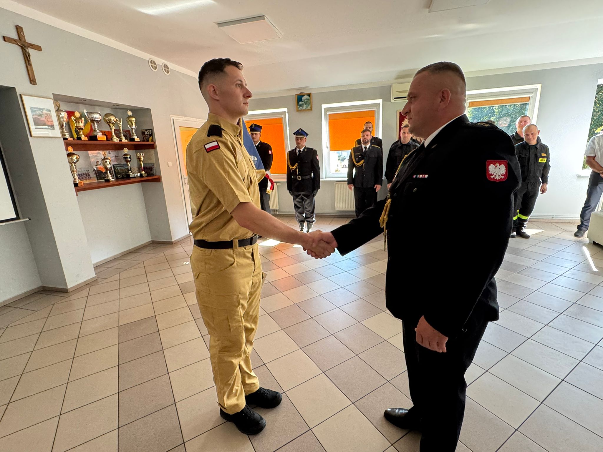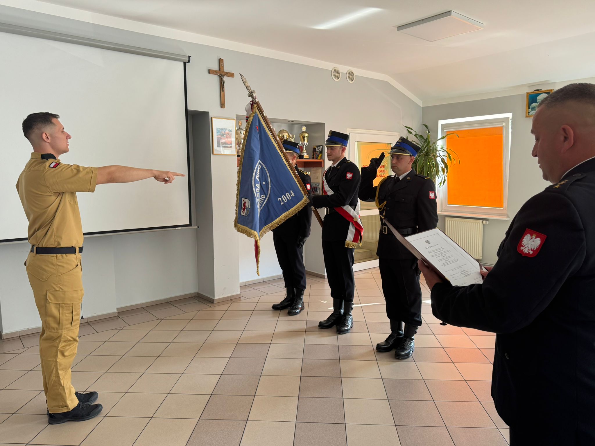 To fragment roty ślubowania strażaka Państwowej Straży Pożarnej, które złożył dzisiaj nowoprzyjęty str. Wojciech Swojnóg. Funkcjonariusz wypowiedział te słowa na sztandar Komendy Powiatowej Państwowej Straży Pożarnej w Gryfinie w obecności nowych koleżanek i kolegów na czele z Zastępcą Komendanta Powiatowego Państwowej Straży Pożarnej w Gryfinie kpt. Danielem Kałużniakiem.