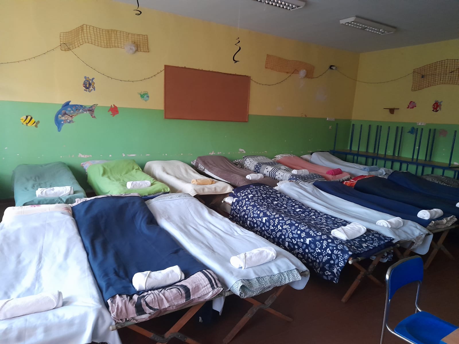 -rozwożeniu łóżek, śpiworów oraz koców do miejsc noclegowych,
