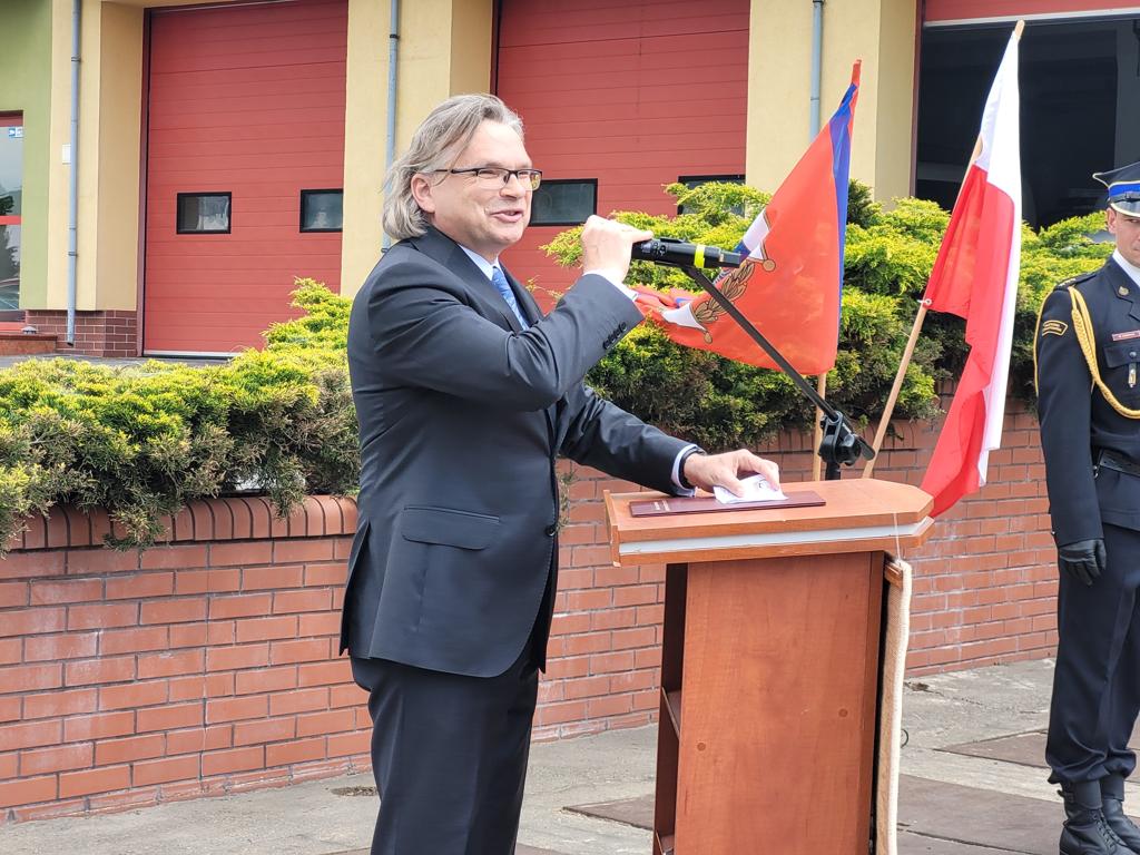Komendant Powiatowy PSP w Gryfinie bryg. Sławomir Michalski przywitał przybyłych gości.