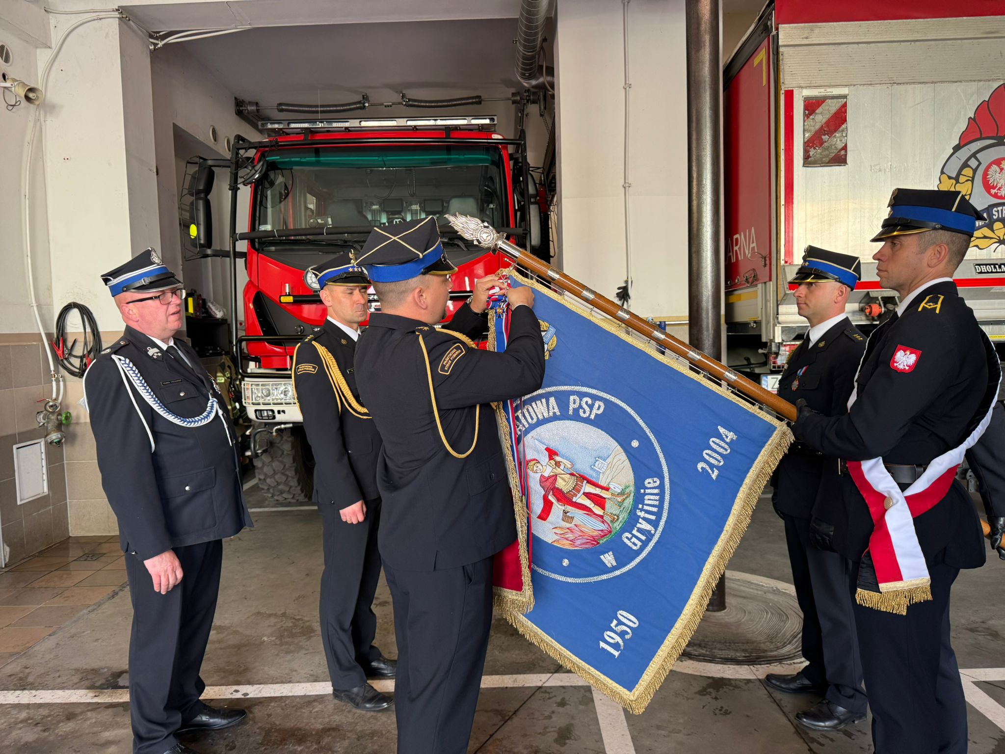 Oprócz tego, 16 maja odbyła się dodatkowa zbiórka, podczas której wręczono odznaczenia na sztandary dla Komendy Powiatowej PSP w Gryfinie oraz OSP w Chojnie - sztandary odznaczono Złotym Krzyżem II klasy Odznaki Świętego Floriana Mazovia.