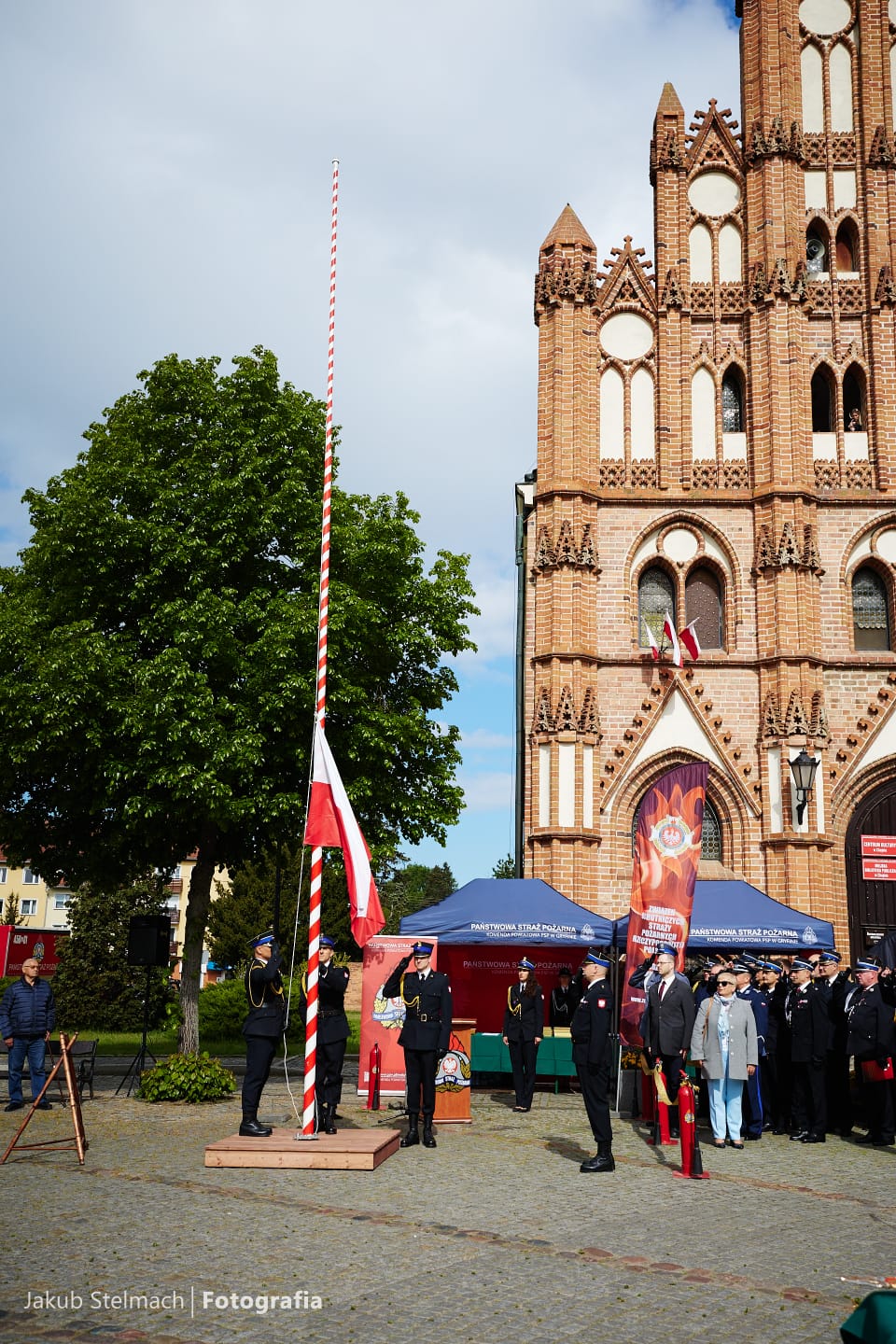 Po niej uroczystym przemarszem udano się na plac przed Ratuszem. Meldunek pododdziałów pożarniczych do uroczystego apelu przyjął Zachodniopomorski Komendant Wojewódzki Państwowej Straży Pożarnej. Następnie wciągnięta została Flaga Państwowa i odśpiewano Hymn.