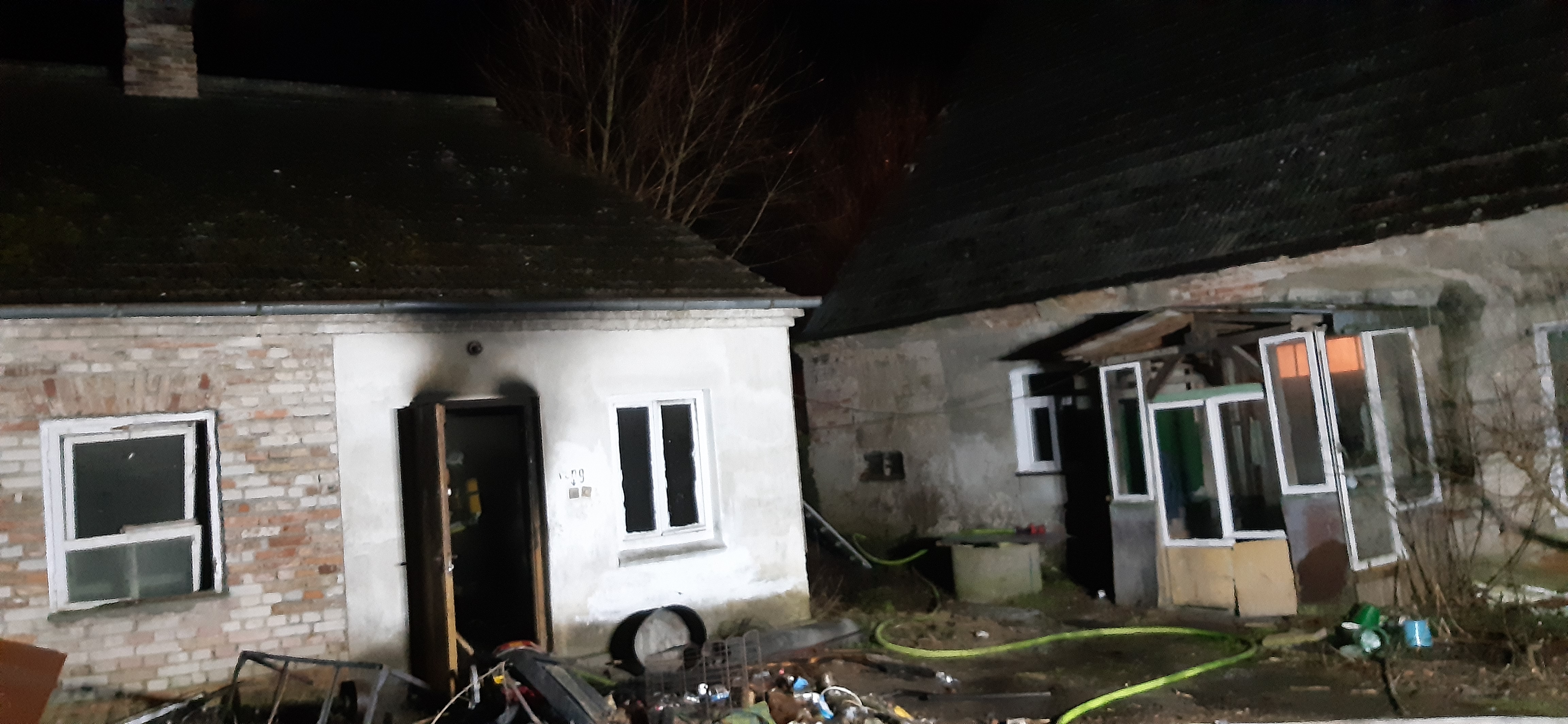 W dniu 05.02.2021r w godzinach wieczornych miał miejsce pożar budynku w miejscowości Chojna przy ul. Barnkowo. Zapaleniu uległy dwa pomieszczenia. Działania strażaków polegały na zabezpieczeniu miejsca zdarzenia, odłączeniu prądu w budynku, podaniu dwóch prądów gaśniczych w natarciu na źródło pożaru oraz na wynoszone elementy z pomieszczenia mieszkalnego: tapczan, ława, drewniane meble. Następnie po zlokalizowaniu pożaru strażacy podali jeden prąd gaśniczy w natarciu przez okno na poddaszu, przy użyciu drabiny nasadkowej. Dalsze działania polegały na rozbiórce stropu drewnianego i dogaszaniu zarzewi powstałych w stropie budynku gospodarczym. W zdarzeniu nikt nie odniósł obrażeń.
