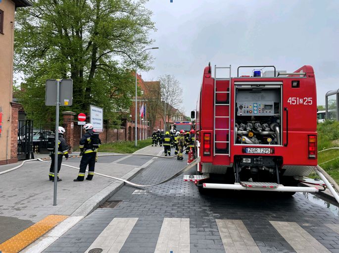 W dniu 14.05.20201 r. około godziny 14:05 doszło do pożaru w pomieszczeniu gospodarczym na I piętrze w budynku poczty przy ul. Sprzymierzonych 2 w Gryfinie. Pracownicy poczty ewakuowali się samodzielnie na zewnątrz budynku przed przybyciem straży.