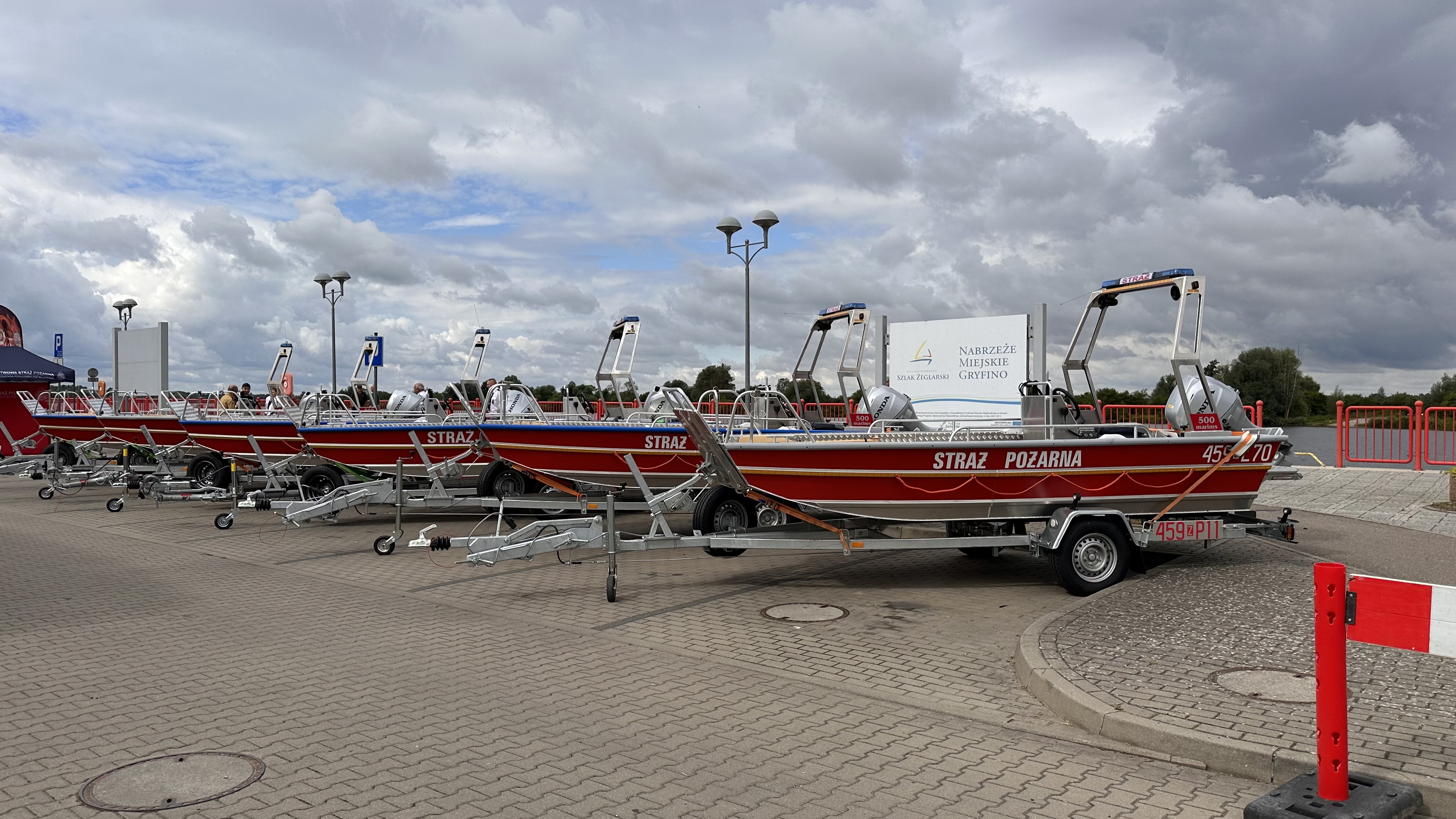 20 lipca br. na nabrzeżu w Gryfinie odbyła się uroczystość przekazania w użyczenie łodzi ratowniczych MARIMS 500 Mazuria o długości 4,82 m, (8 osobowe, silnik zaburtowy 50 KM) dla jednostek Ochotniczych Straży Pożarnych: