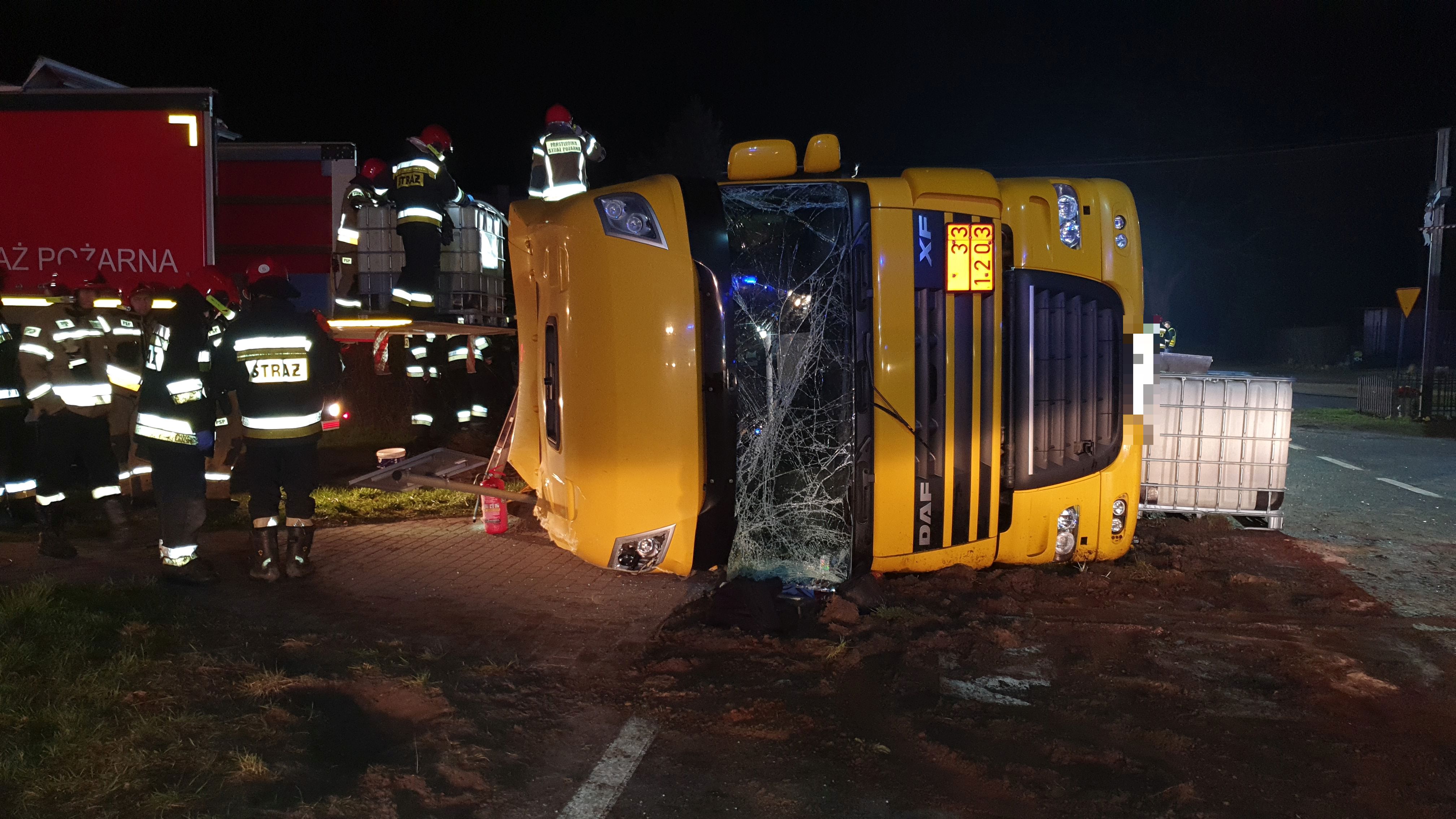 Wypadek ciągnika siodłowego z naczepą w Dębogórze.