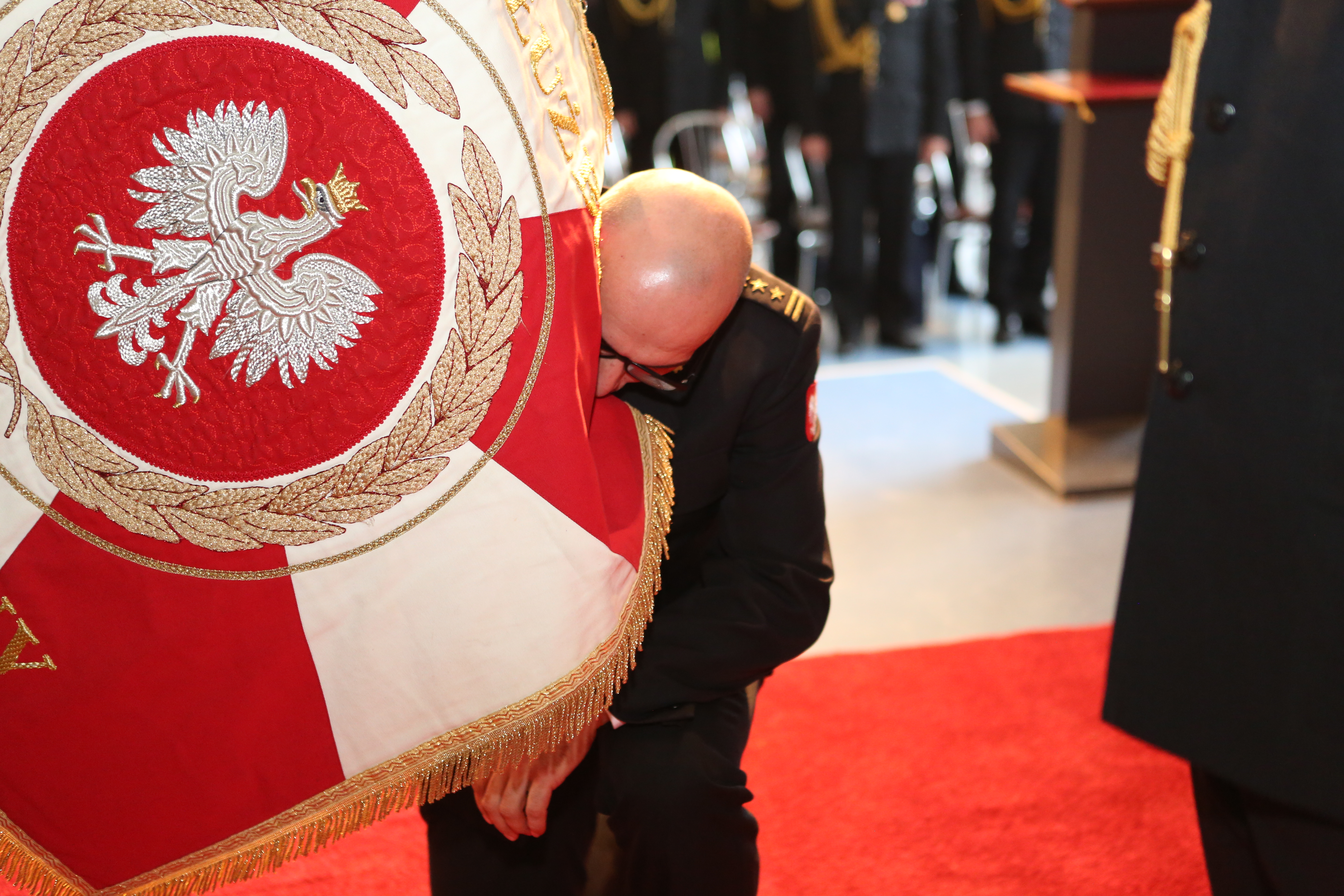 Uroczystość rozpoczęła się od złożenia meldunku p.o. Zachodniopomorskiego Komendanta Wojewódzkiego Państwowej Straży Pożarnej st. bryg. Mirosławowi Penderowi przez dowódcę uroczystości mł. asp. Rafała Staszaka.
