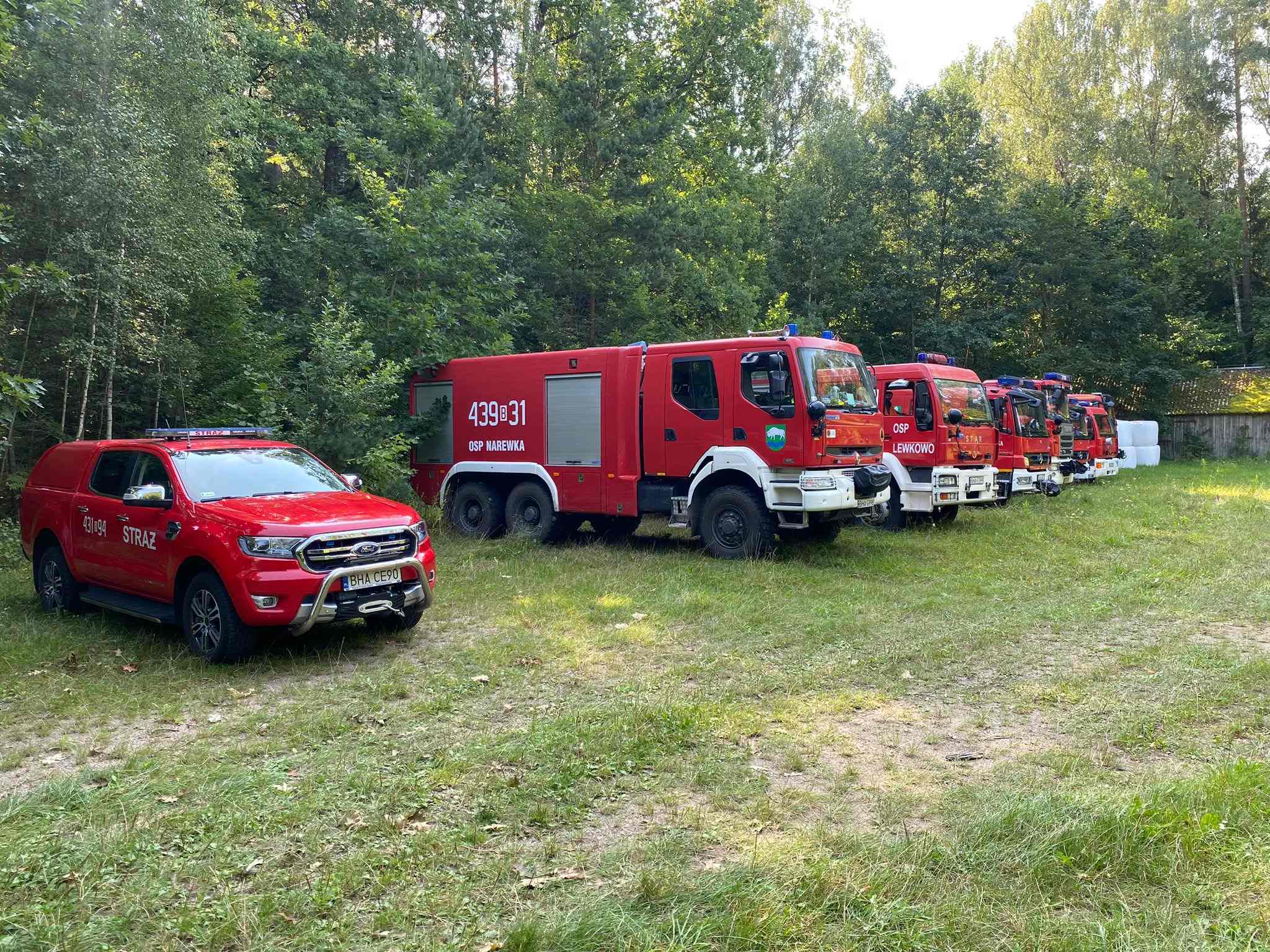 17 sierpnia 2023 r. na terenie powiatu hajnowskiego na obszarach leśnych Nadleśnictwa Browsk odbyły się ćwiczenia z zakresu gaszenia pożarów trudno dostępnych obszarów leśnych kompleksów Puszczy Białowieskiej.