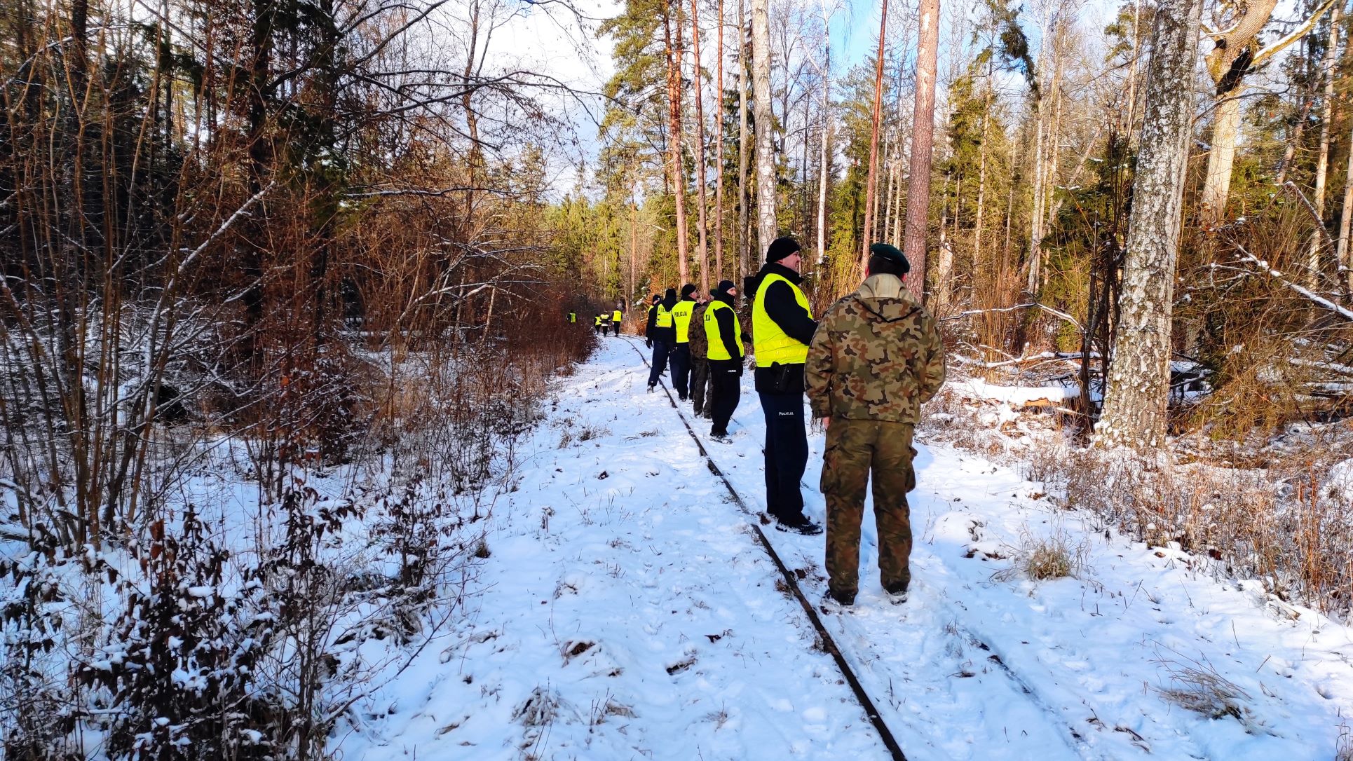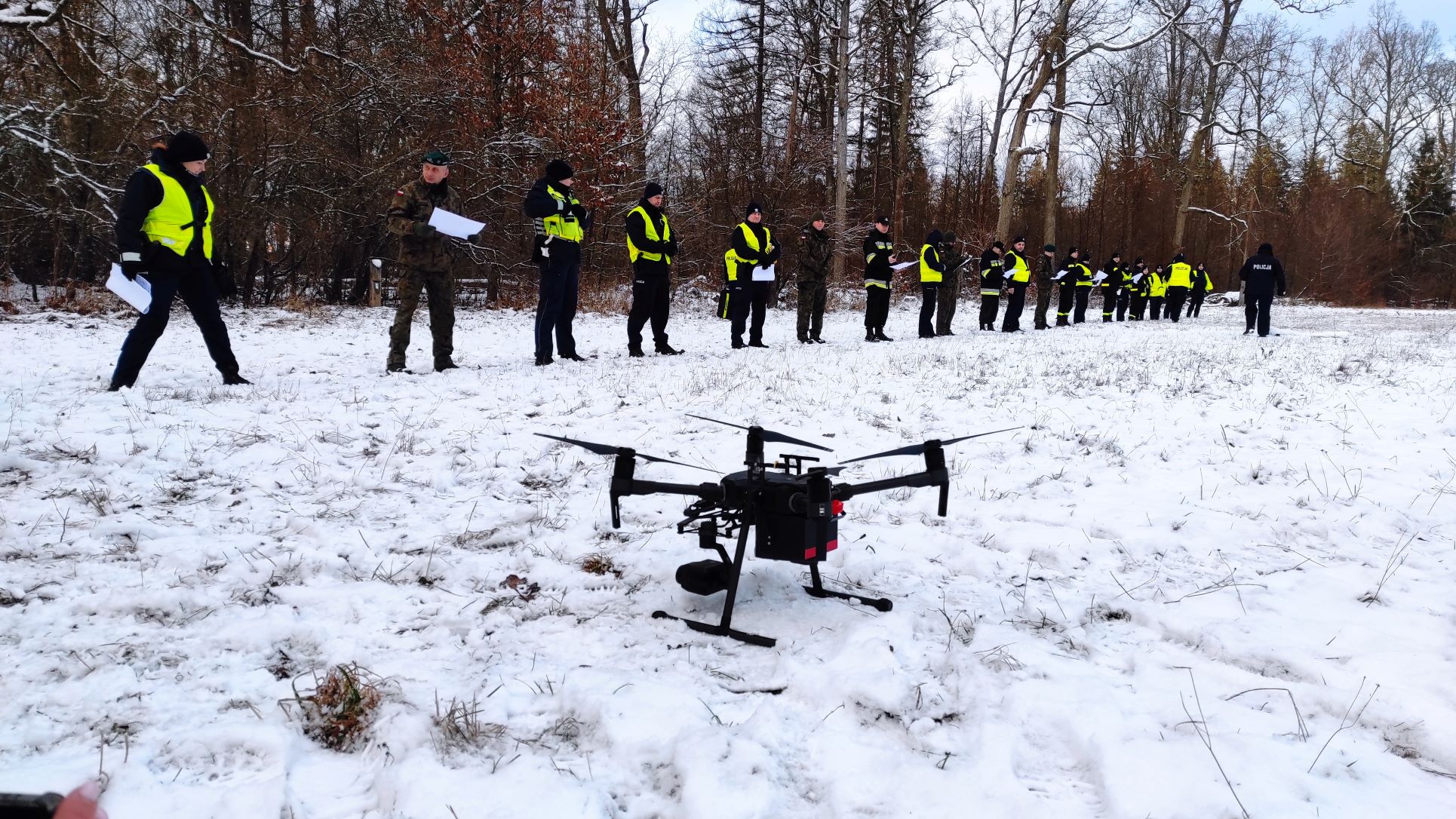 Ćwiczenia służb mundurowych w zakresie akcji poszukiwawczych w masywach leśnych