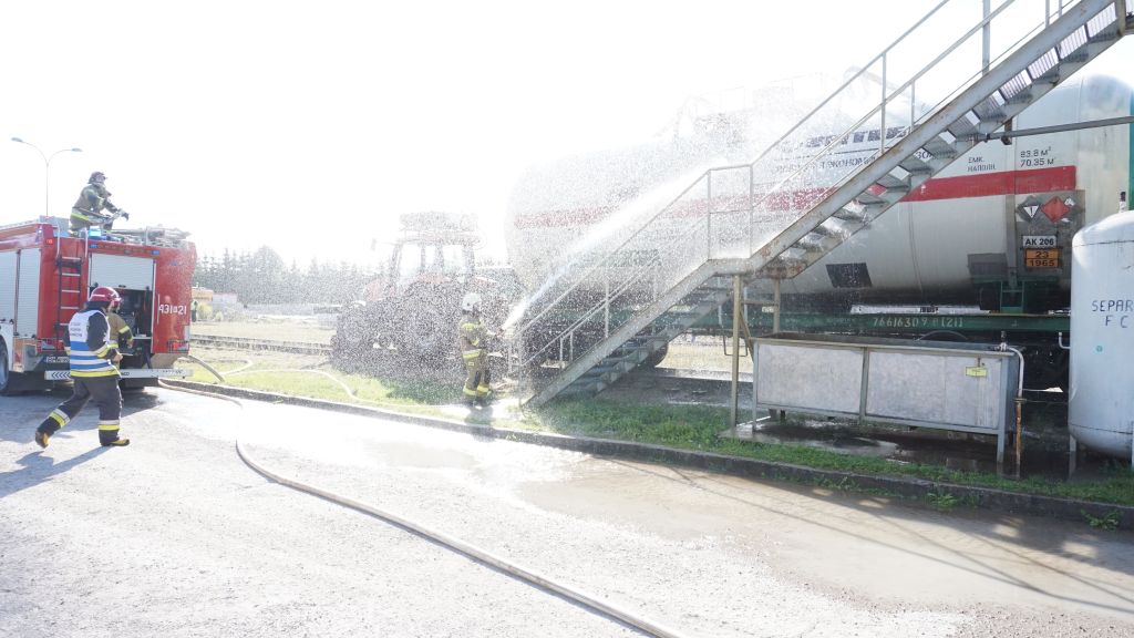 Zadania zastępów biorących udział w ćwiczeniach polegały na zabezpieczeniu miejsca zdarzenia, odnalezieniu i ewakuacji pracownika zakładu, udzieleniu mu kwalifikowanej pierwszej pomocy, budowy zaopatrzenia wodnego z pobliskiego zbiornika przeciwpożarowego, schładzaniu palącej się cysterny kolejowej, zatamowaniu wycieku gazu i ugaszeniu pożaru.