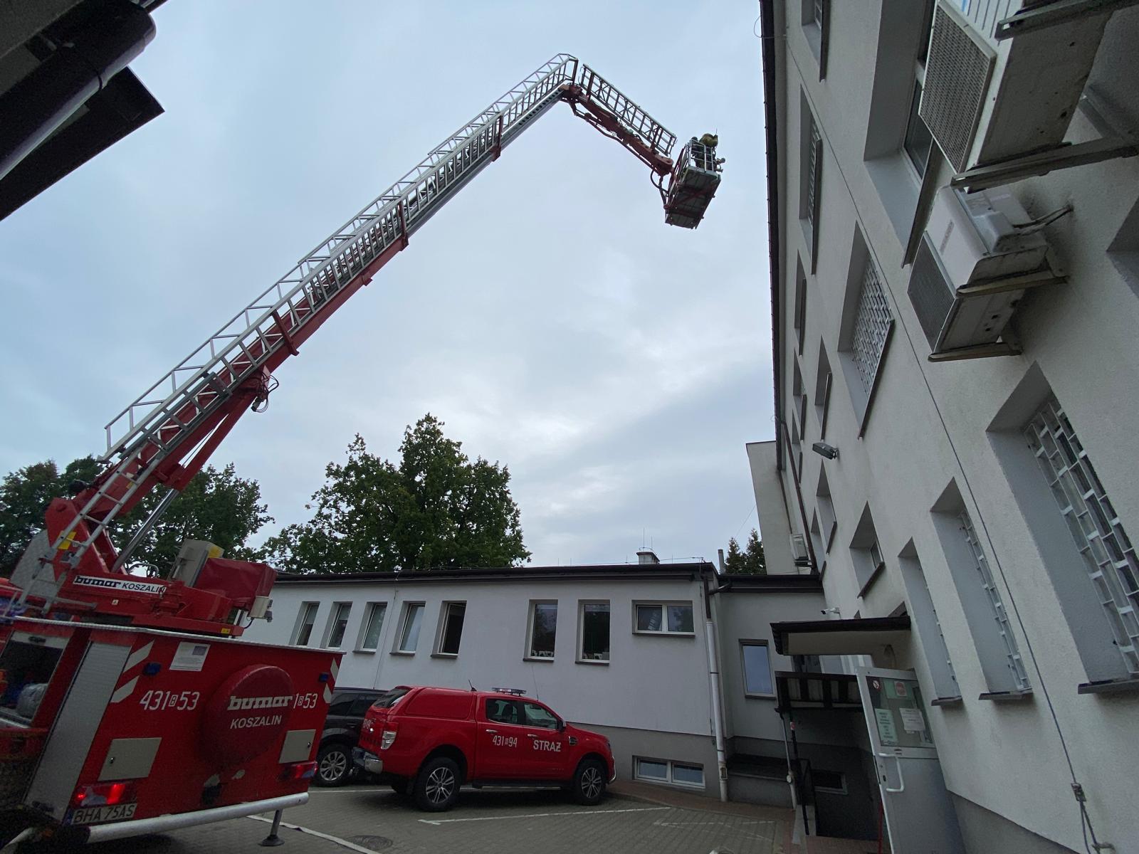 Na pierwszym piętrze budynku Komendy zauważono silne zadymienie. O zdarzeniu została powiadomiona straż pożarna. Pracownicy Komendy ewakuowali się na miejsce zbiorki na zewnątrz budynku.