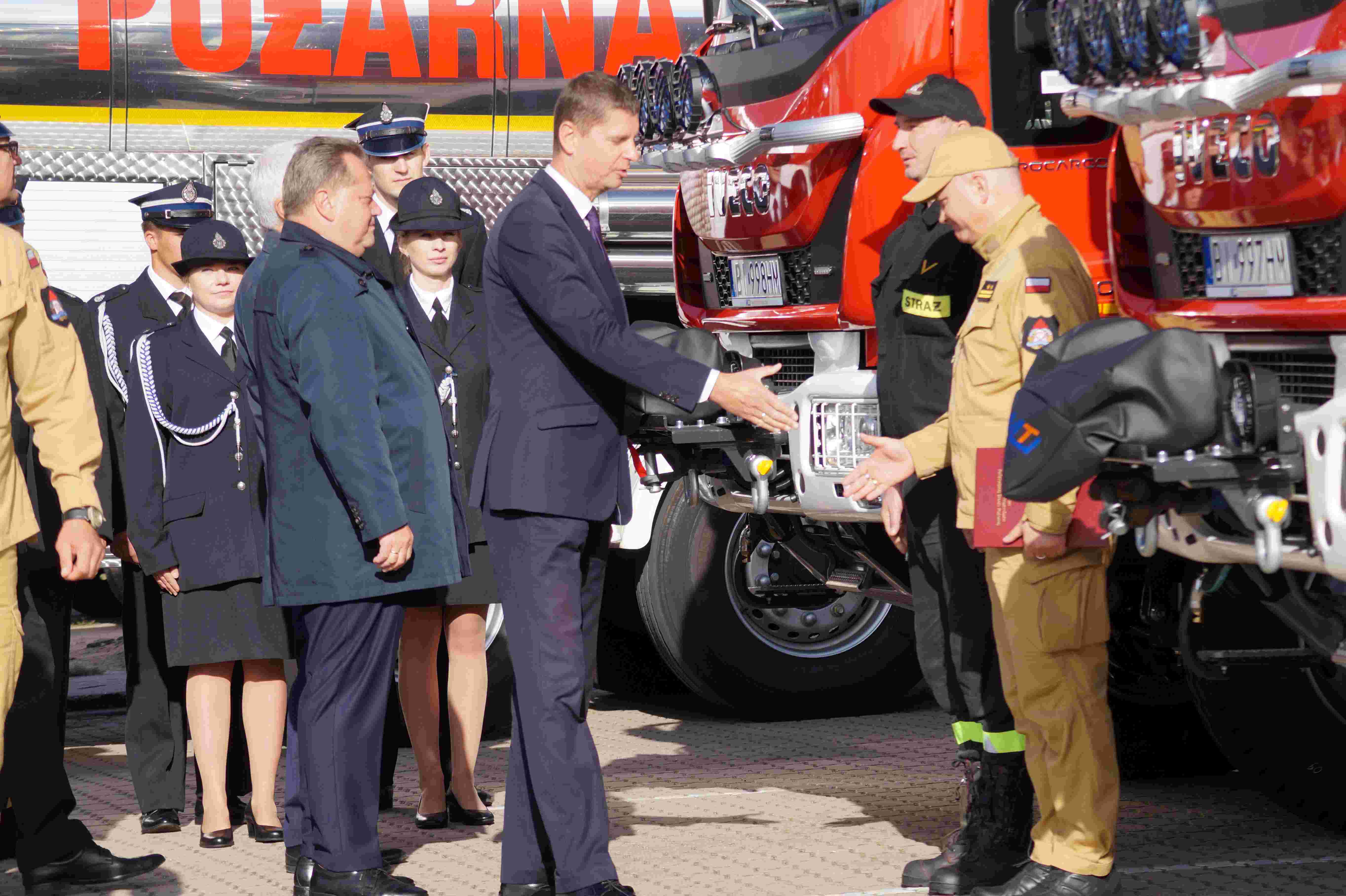 W dalszej kolejności nastąpiło przekazanie nowych samochodów ratowniczo- gaśniczych oraz sprzętu pożarniczego — agregatów prądotwórczych i motopomp, Komendom Państwowej Straży Pożarnej, jednostkom Ochotniczych Straży Pożarnych województwa podlaskiego oraz zaprzyjaźnionym jednostkom Straży Pożarnej Samorządu Rejonu Solecznickiego Litwy.