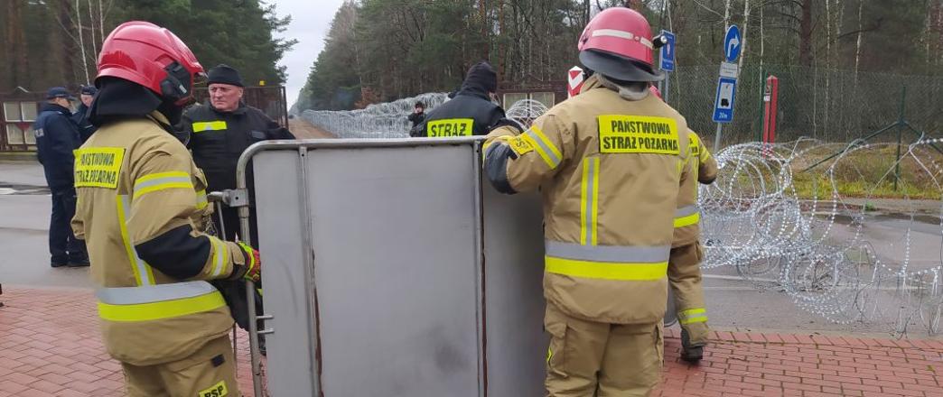 W piątek 19 listopada strażacy z terenu powiatu hajnowskiego wspierając służby działające na granicy państwa pomogli ustawiać barierki przeciwtłumowe na przejściach granicznych w Połowcach oraz w Białowieży. Ponadto na przejściu w Połowcach w celu zapewnienia właściwego stanu przejezdności bocznych dróg dojazdowych dokonano wykarczowania małych drzew i krzewów. W działaniach na przejściu granicznym w Połowcach uczestniczyło łącznie osiem zastępów straży pożarnej: dwa zastępy z Jednostki Ratowniczo-Gaśniczej w Hajnówce, zastęp z Jednostka Ratowniczo-Gaśniczej posterunek w Czeremsze oraz po jednym zastępie z Ochotniczej Straży Pożarnej w Kleszczelach, Czeremsze, Czeremsze Wsi, Dobrowodzie. Natomiast na przejście graniczne w Białowieży zadysponowano sześć zastępów straży pożarnej: dwa zastępy z Jednostki Ratowniczo-Gaśniczej w Hajnówce oraz po jednym zastępie z Ochotniczej Straży Pożarnej w Białowieży, Mochnatym, Nowokorninie i Orzeszkowie. Działania na przejściach granicznych osobiście nadzorował Zastępca Komendanta Powiatowego PSP w Hajnówce oraz Dowódca Jednostki Ratowniczo - Gaśniczej w Hajnówce.
