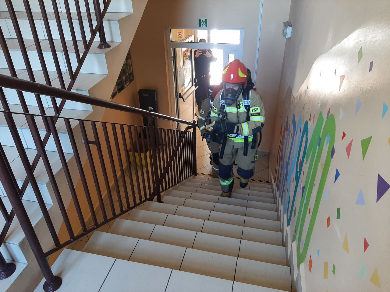 Ewakuacja próbna, ćwiczenia i pogadanka wraz z przekazaniem książeczek dla dzieci niepełnosprawnych w Ośrodku Szkolno-Wychowawczym w Hajnówce