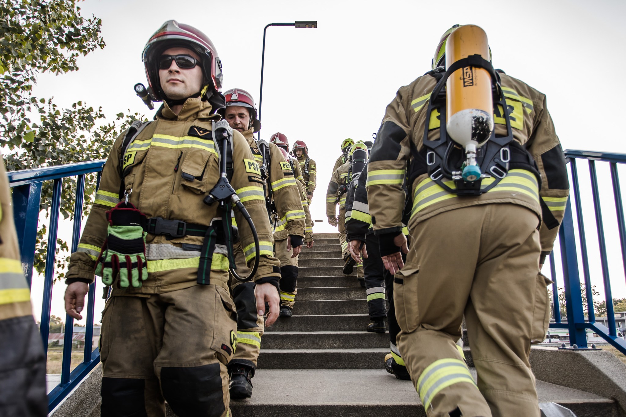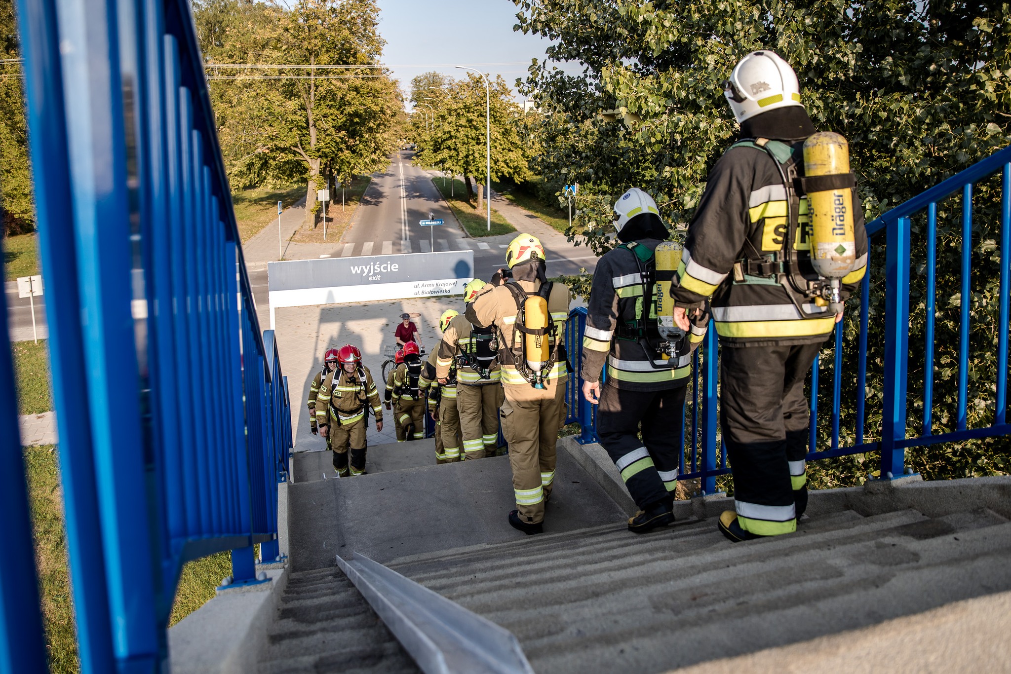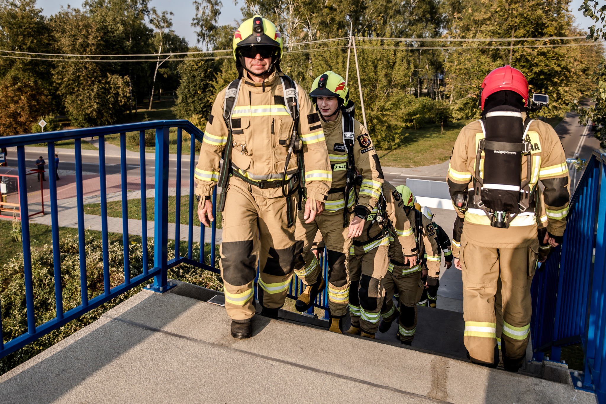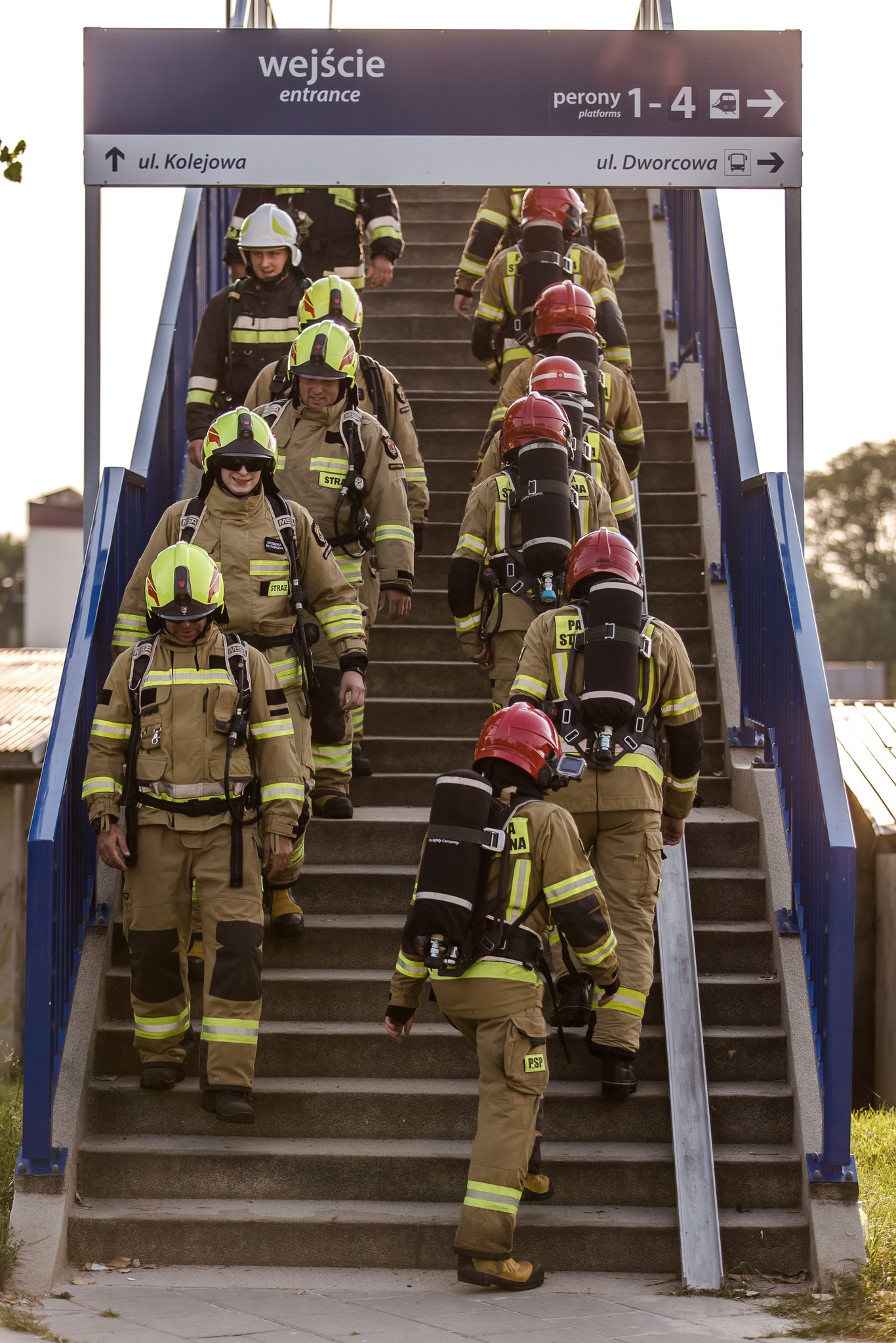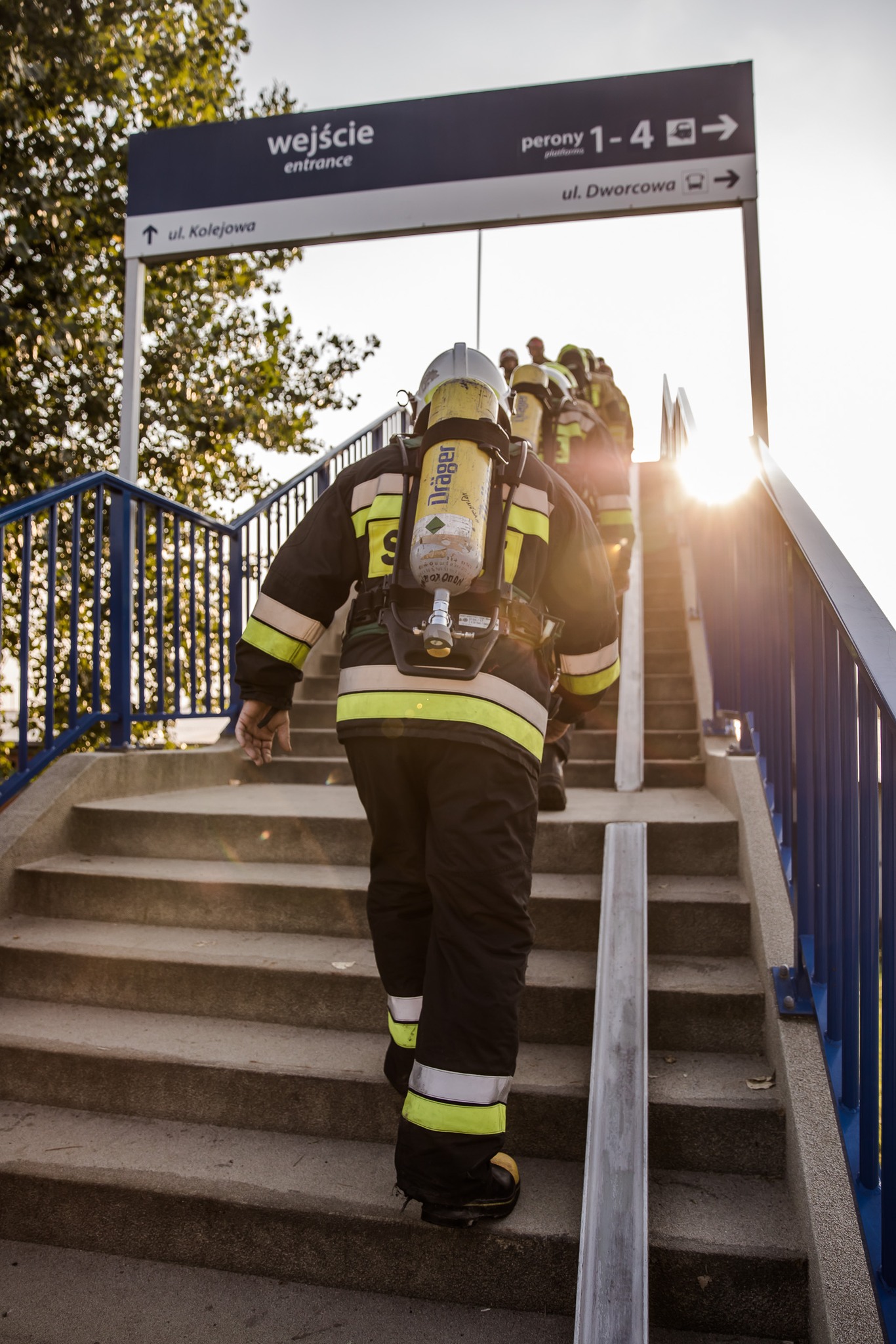 Dokładnie o godz. 17:00 w na wiadukcie nad linią kolejową przy ul. Białowieskiej w Hajnówce trzynastu strażaków wspinało się w pełnym umundurowaniu bojowym z aparatami ochrony układu oddechowego po schodach i pokonało łącznie 12480 stopni.