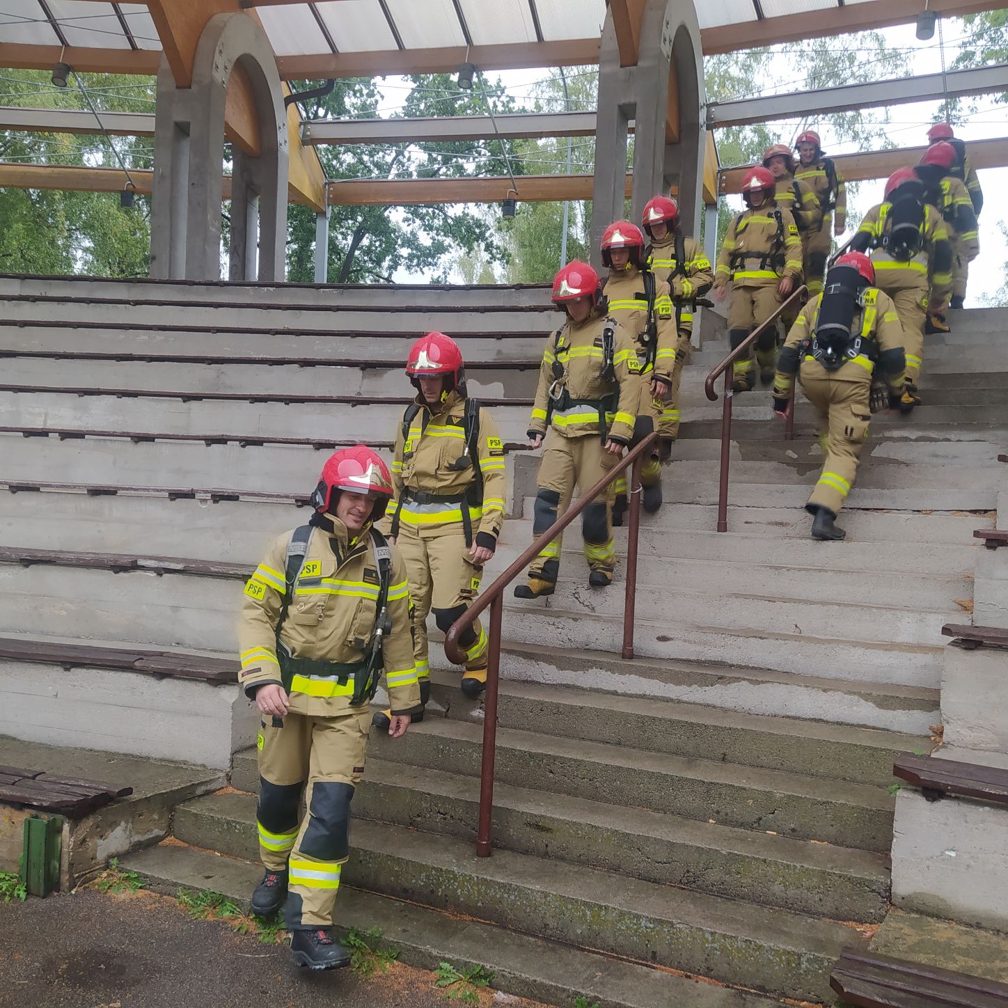 Dokładnie godz. 11:09 w Amfiteatrze Miejskim w Hajnówce trzynastu strażaków wspinało się w pełnym umundurowaniu bojowym z butlami aparatów powietrznych na plecach (bez oddychania powietrzem z butli) po schodach w górę i pokonało 29 900 stopni.