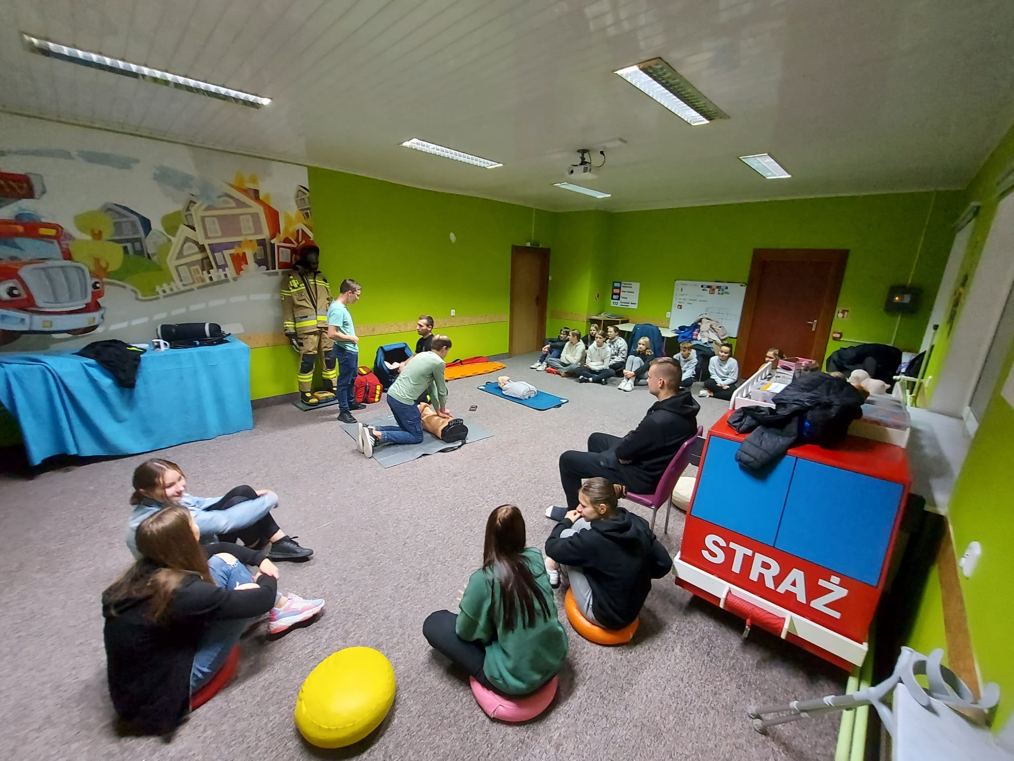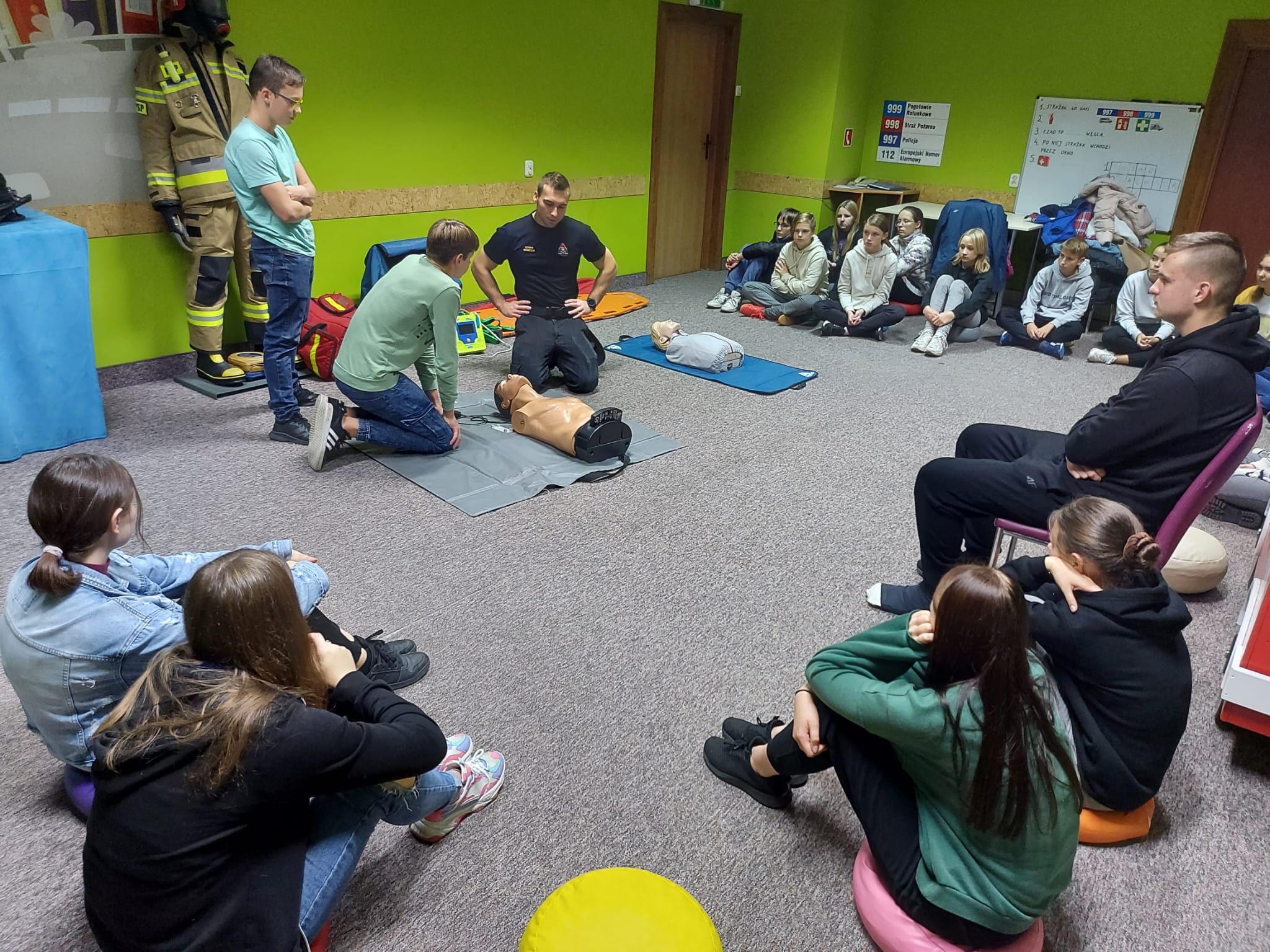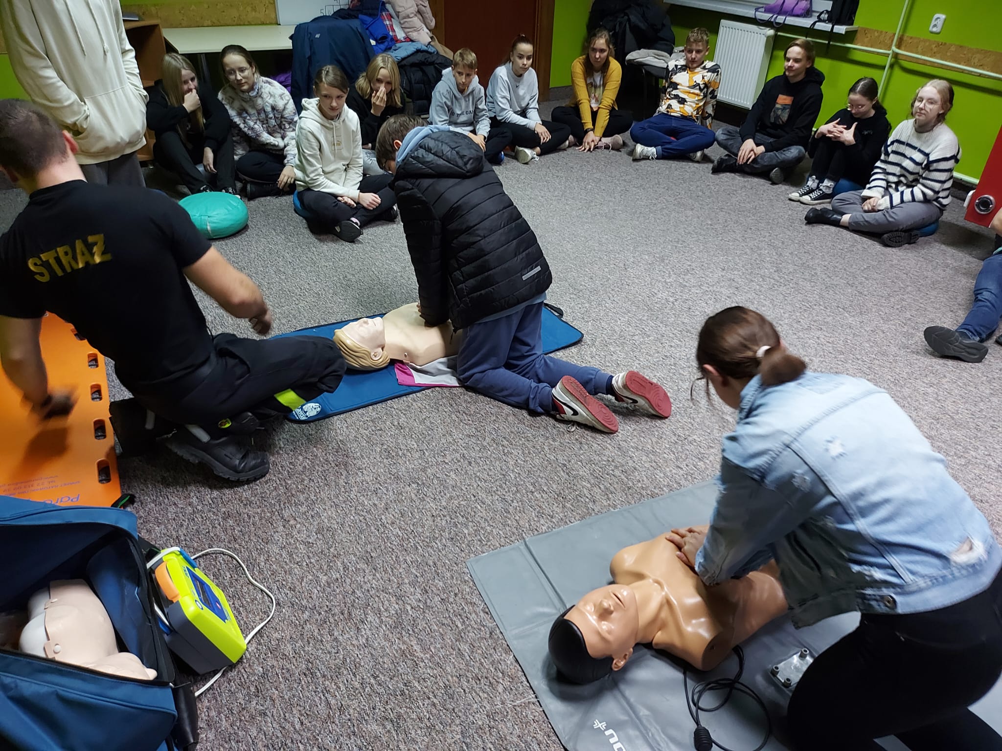 Tematem poruszonym na zbiórce były podstawy pierwszej pomocy. Zajęcia praktyczne poprzedzone były krótkim teoretycznym wprowadzeniem. Następnie młodzieżowcy ćwiczyli na fantomach udrażnianie dróg oddechowych u osób poszkodowanych, przeprowadzanie resuscytacji krążeniowo-oddechowej oraz obsługę defibrylatra AED.